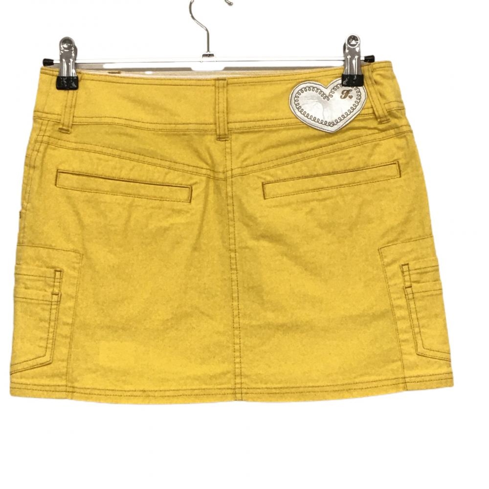 【超美品】フィラゴルフ カーゴスカート イエロー ストライプ織生地 複数ポケット レディース M ゴルフウェア FILA GOLF