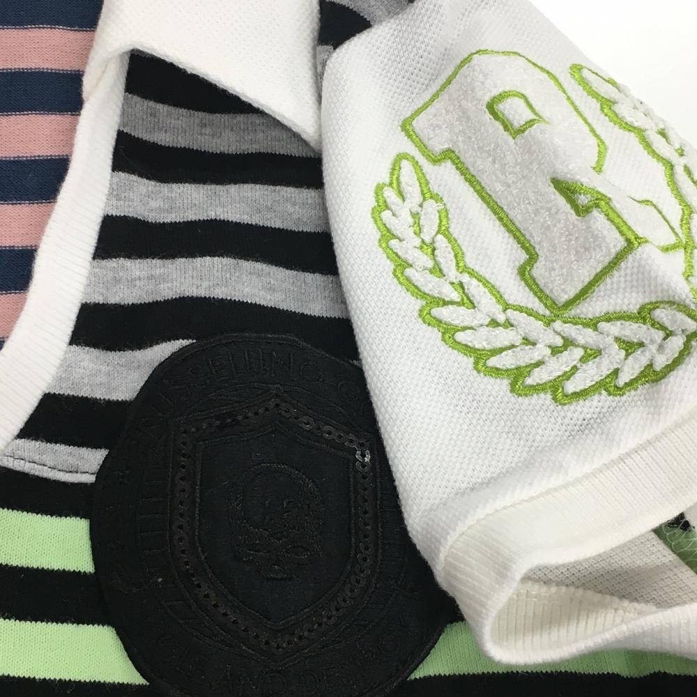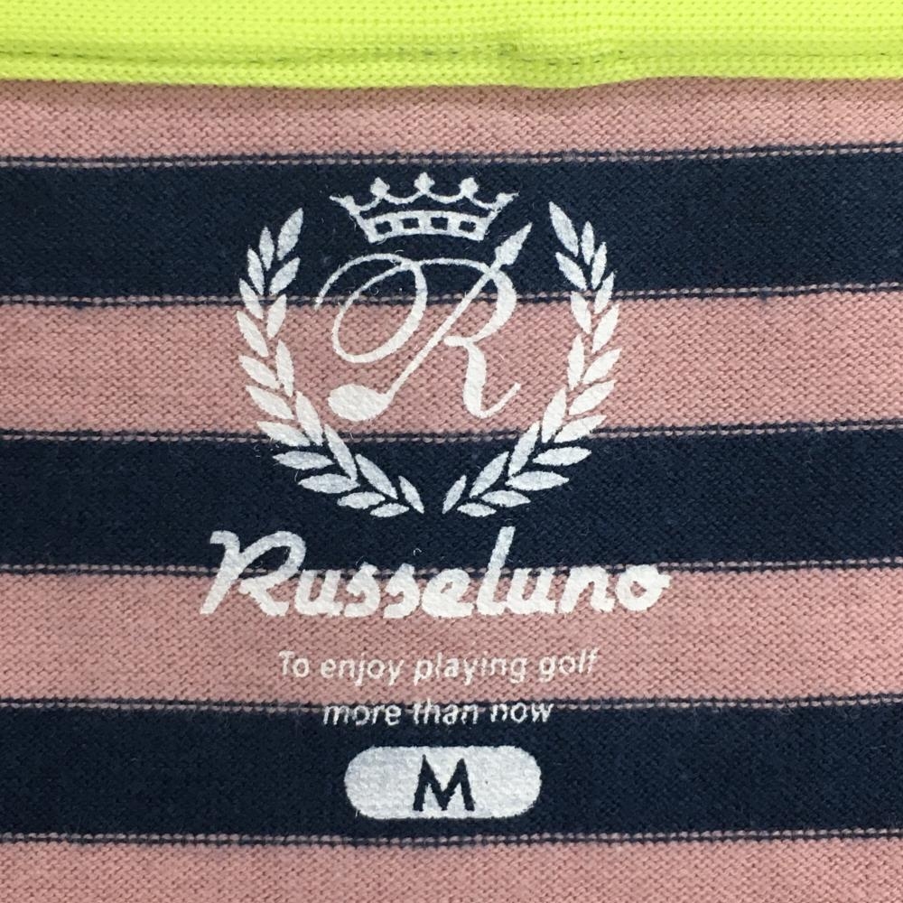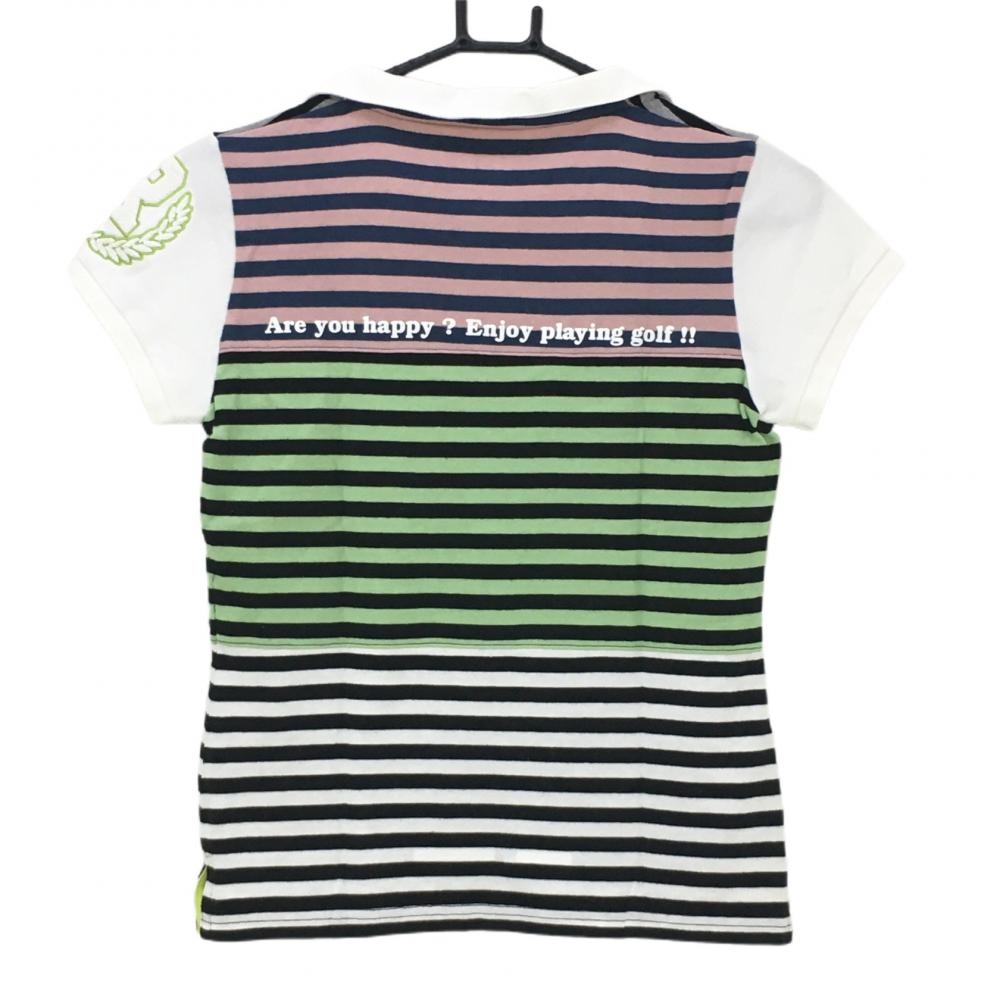 【美品】ラッセルノ 半袖スキッパー ライトグリーン×黒 ボーダー ビッグワッペン レディース M ゴルフウェア RUSSELUNO