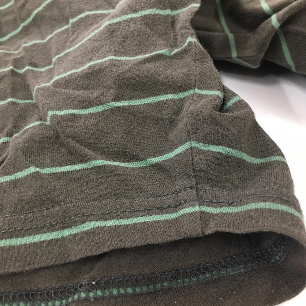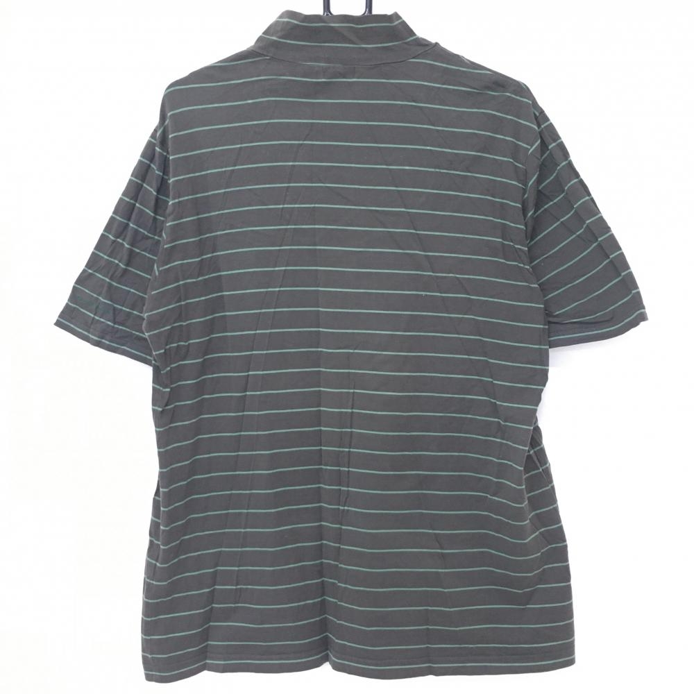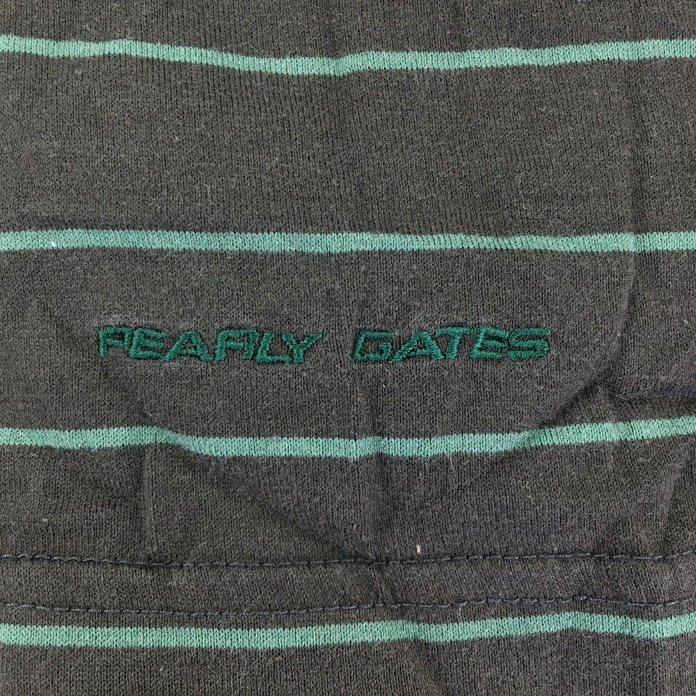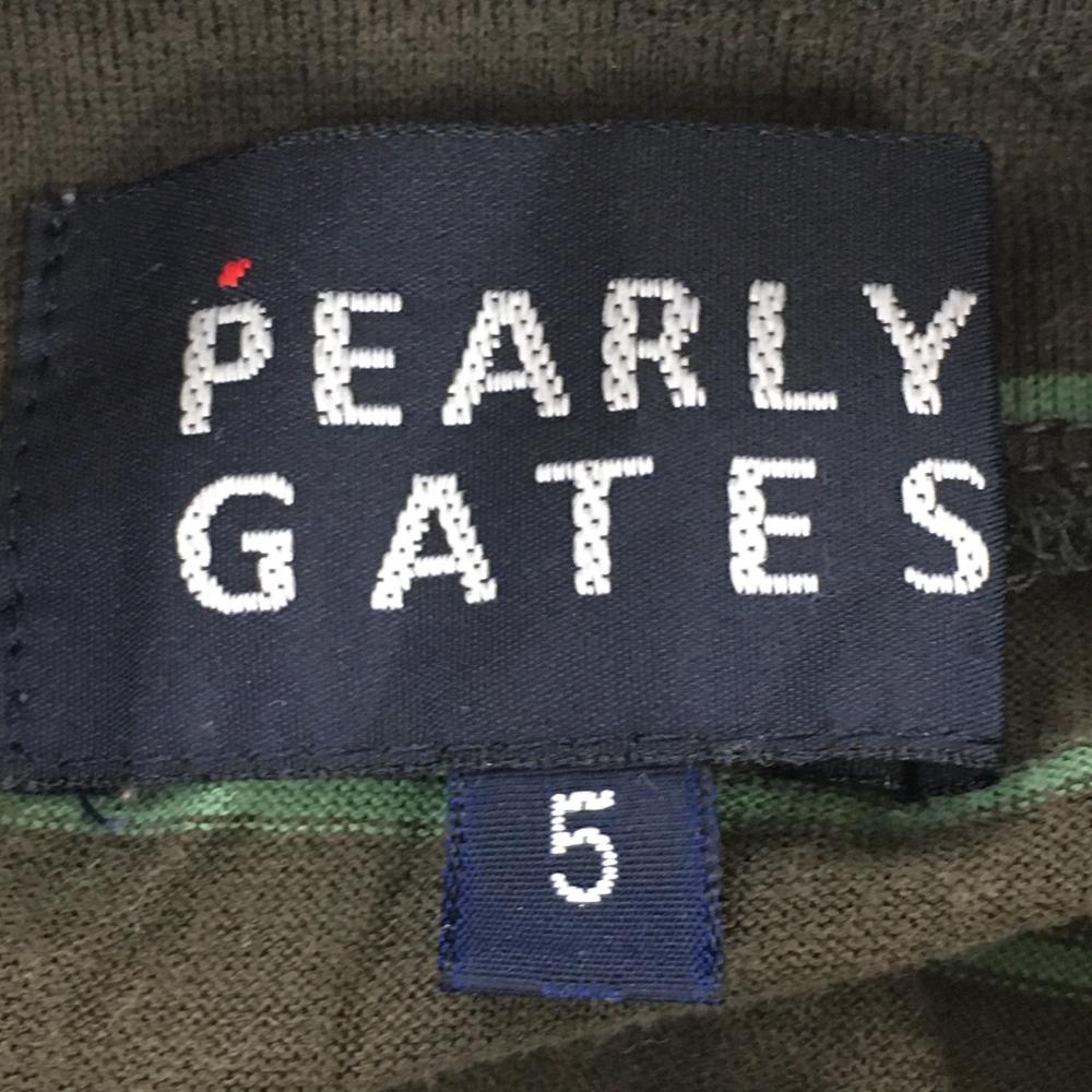 パーリーゲイツ 半袖ハイネックシャツ カーキ系×ライトグリーン ボーダー コットン100% メンズ 5(L) ゴルフウェア PEARLY GATES