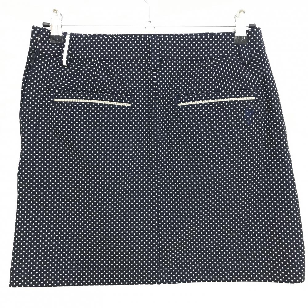 【超美品】アシュワース スカート ネイビー×アイボリー バックロゴ ストレッチ レディース M ゴルフウェア ASHWORTH