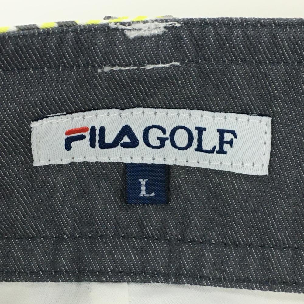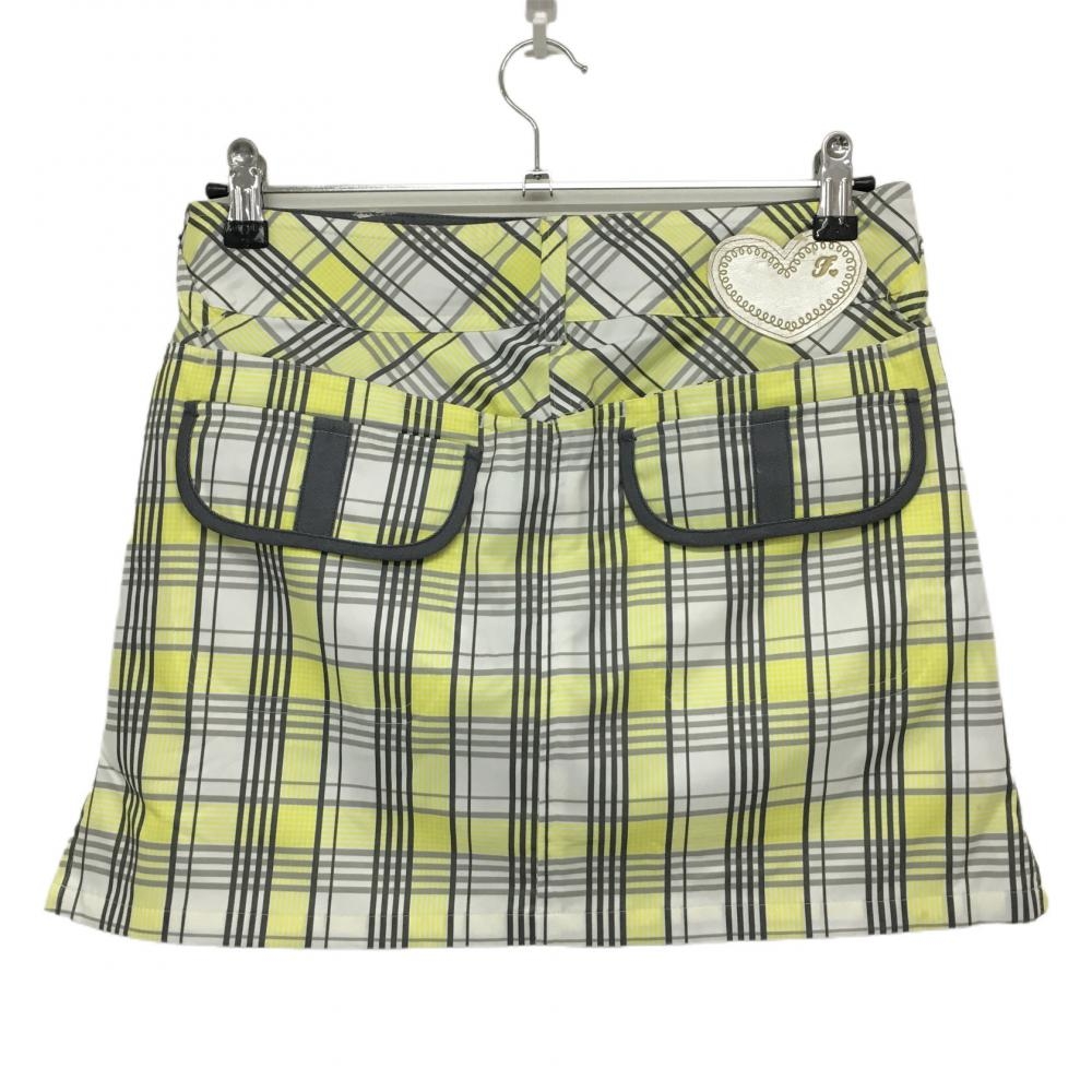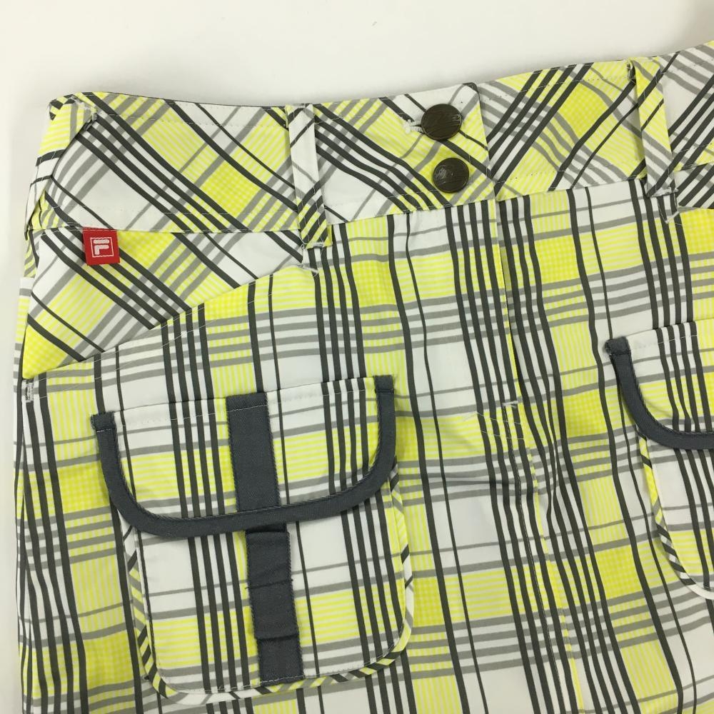 【美品】フィラゴルフ スカート イエロー×白×グレー チェック 内側インナーパンツ レディース L ゴルフウェア FILA GOLF