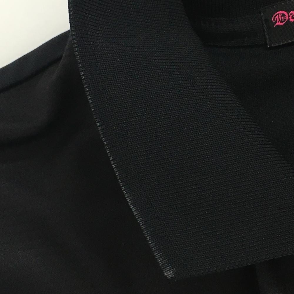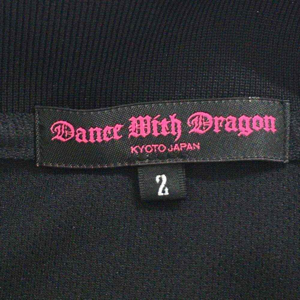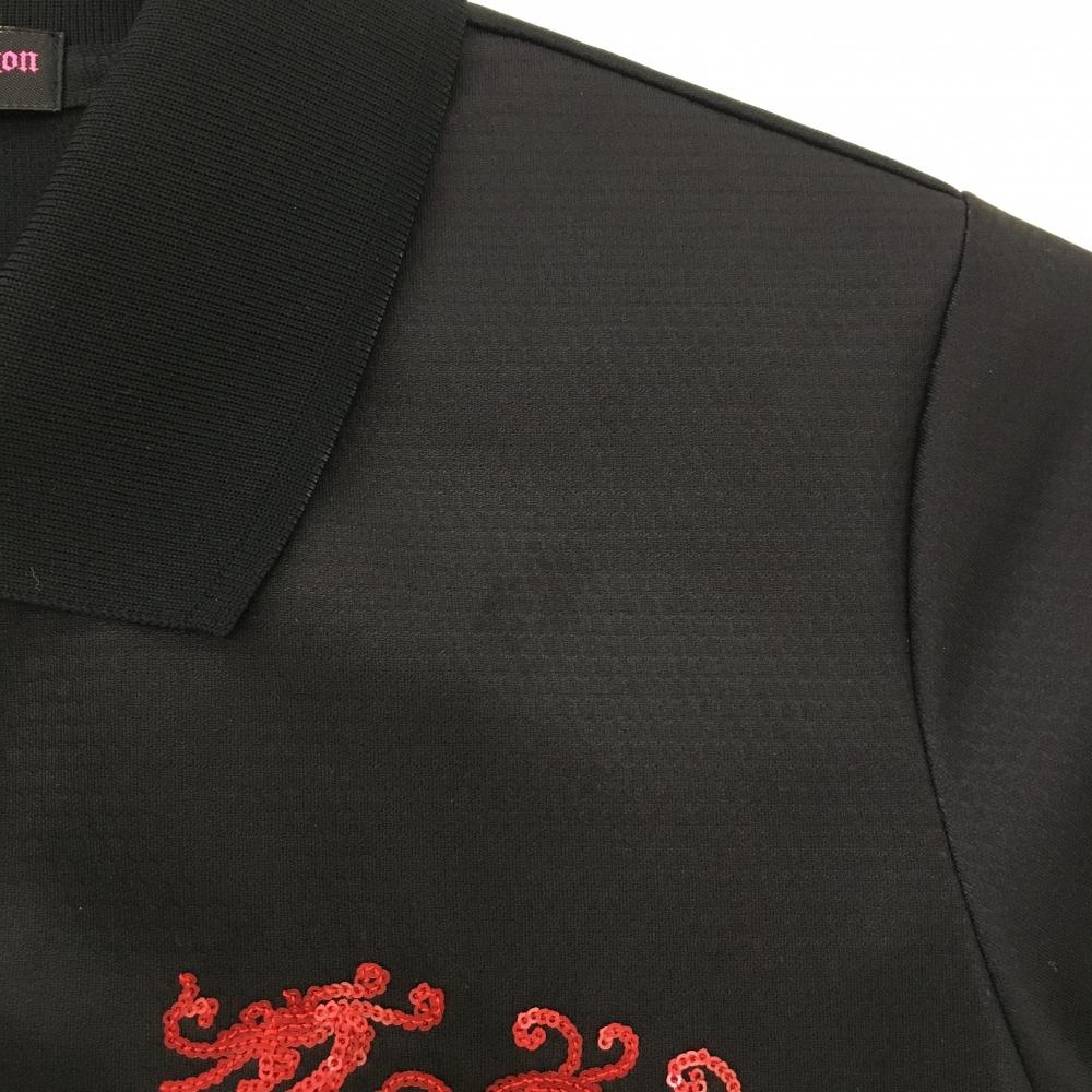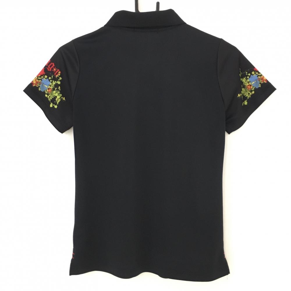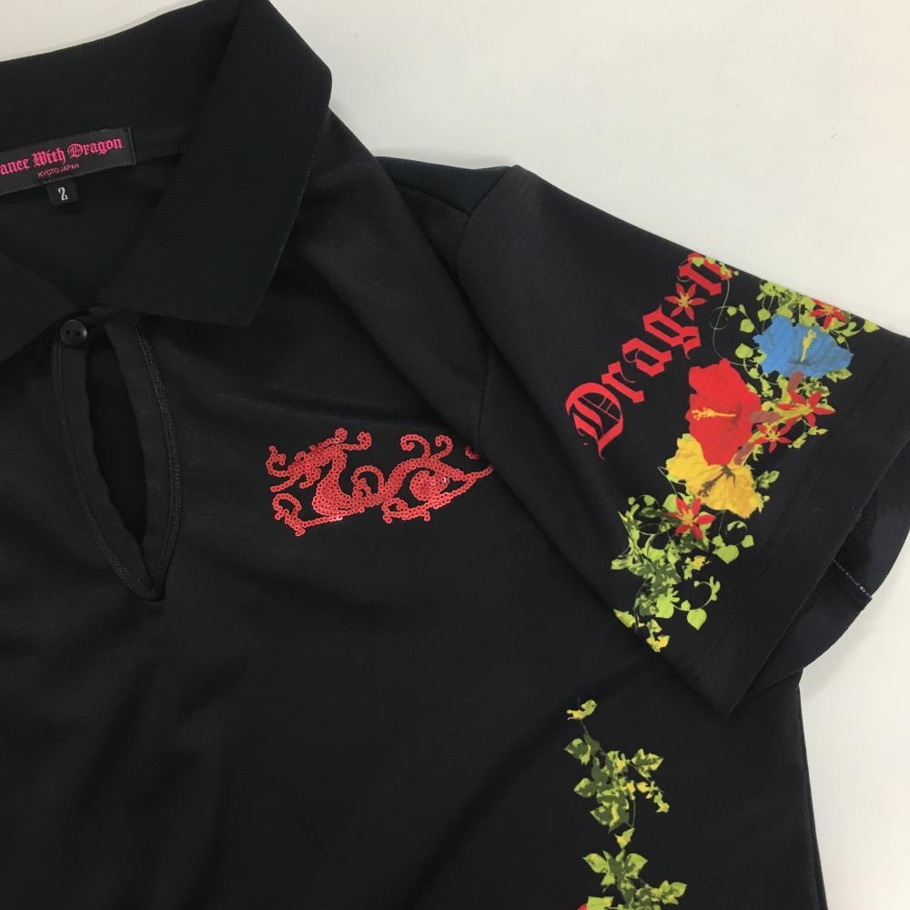 【美品】ダンスウィズドラゴン 半袖スキッパーシャツ 黒×マルチ 裾袖アニマル レディース 2(M) ゴルフウェア Dance With Dragon