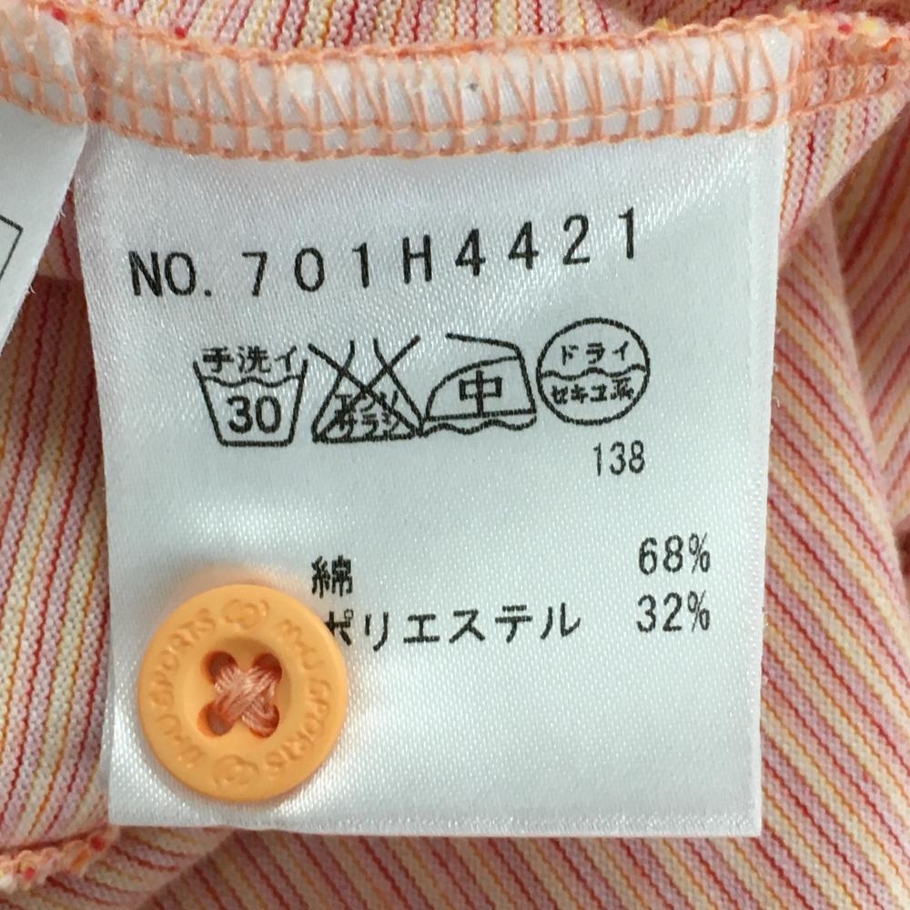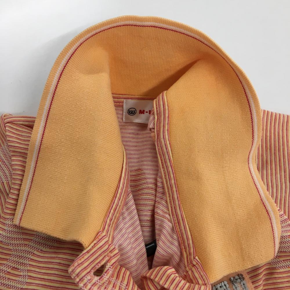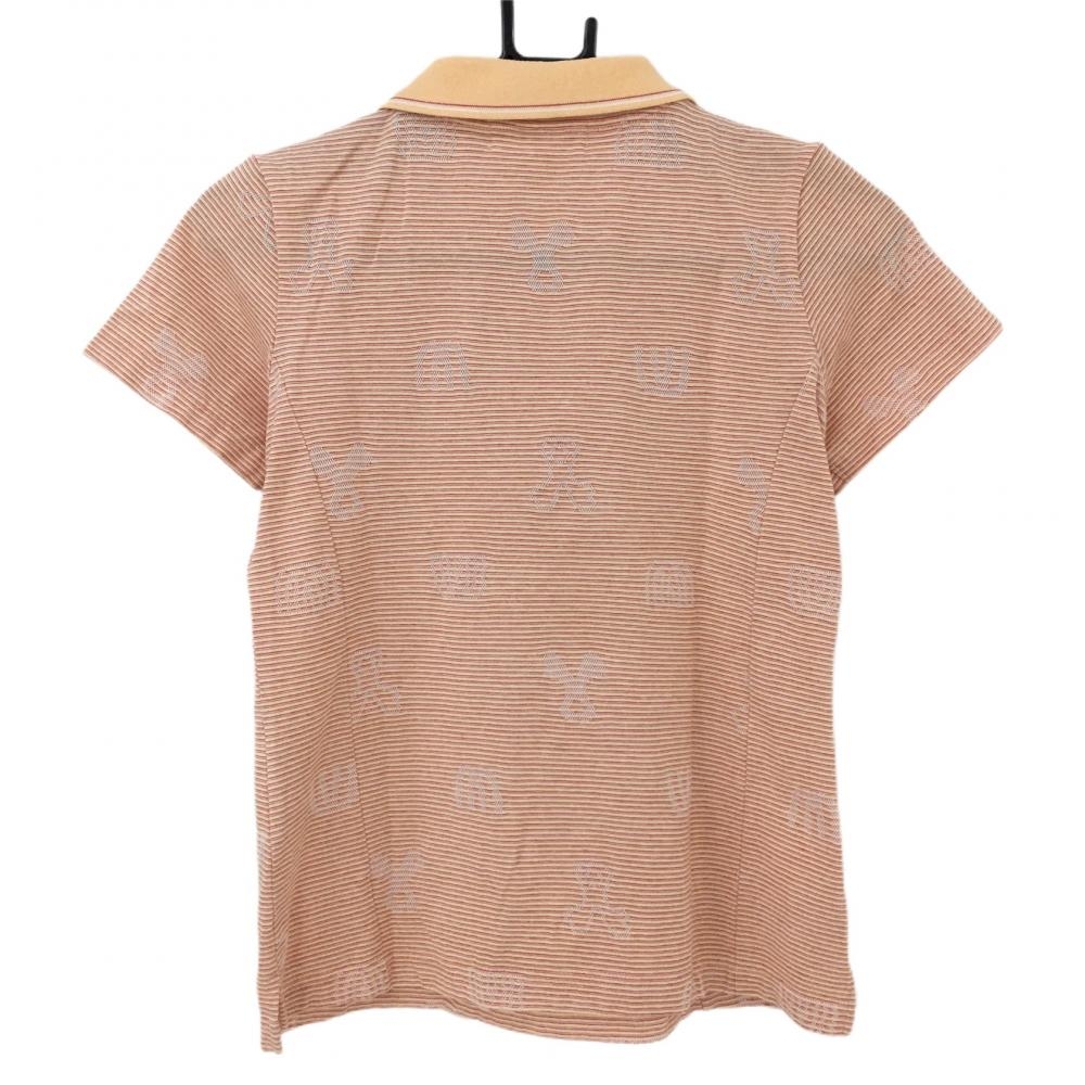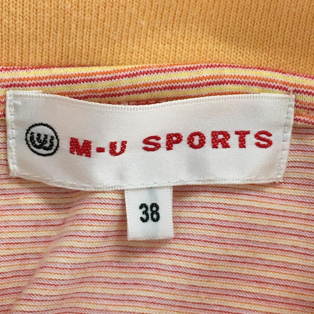 【美品】MUスポーツ 半袖ポロシャツ オレンジ×レッド ボーダー スパンコールワッペン レディース 38(S) ゴルフウェア M・U SPORTS