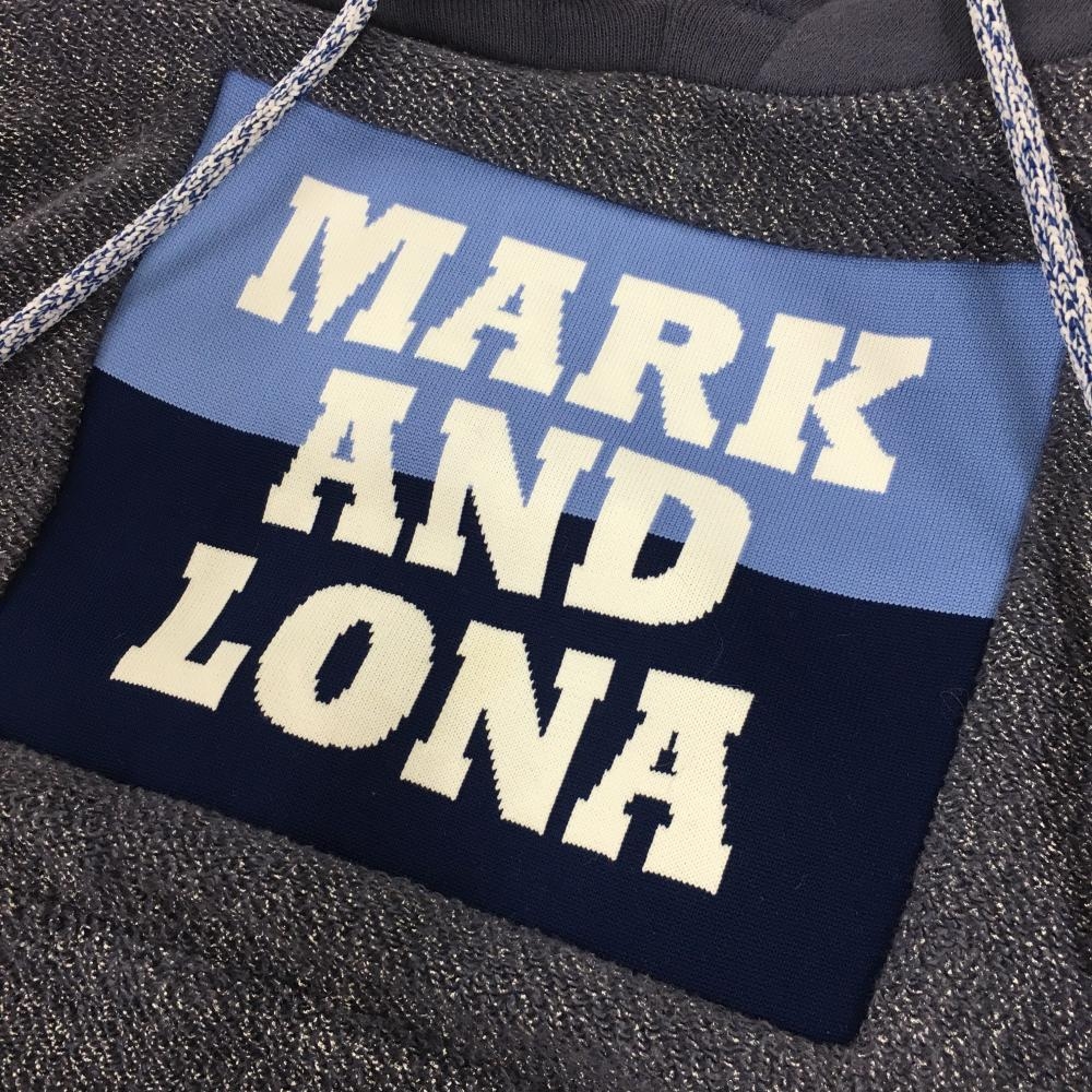 マークアンドロナ パーカー グレーパープル系×白 フロントロゴ ポケット付 レディース S ゴルフウェア MARK&LONA