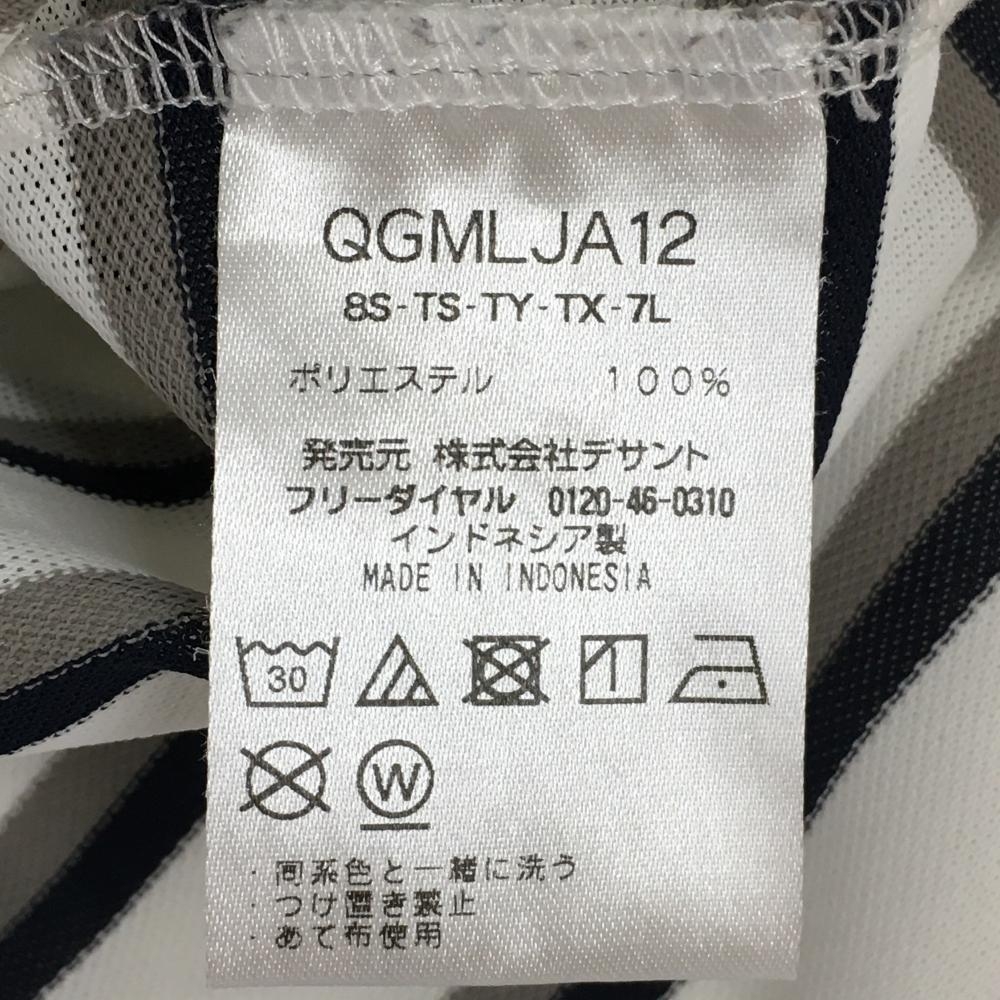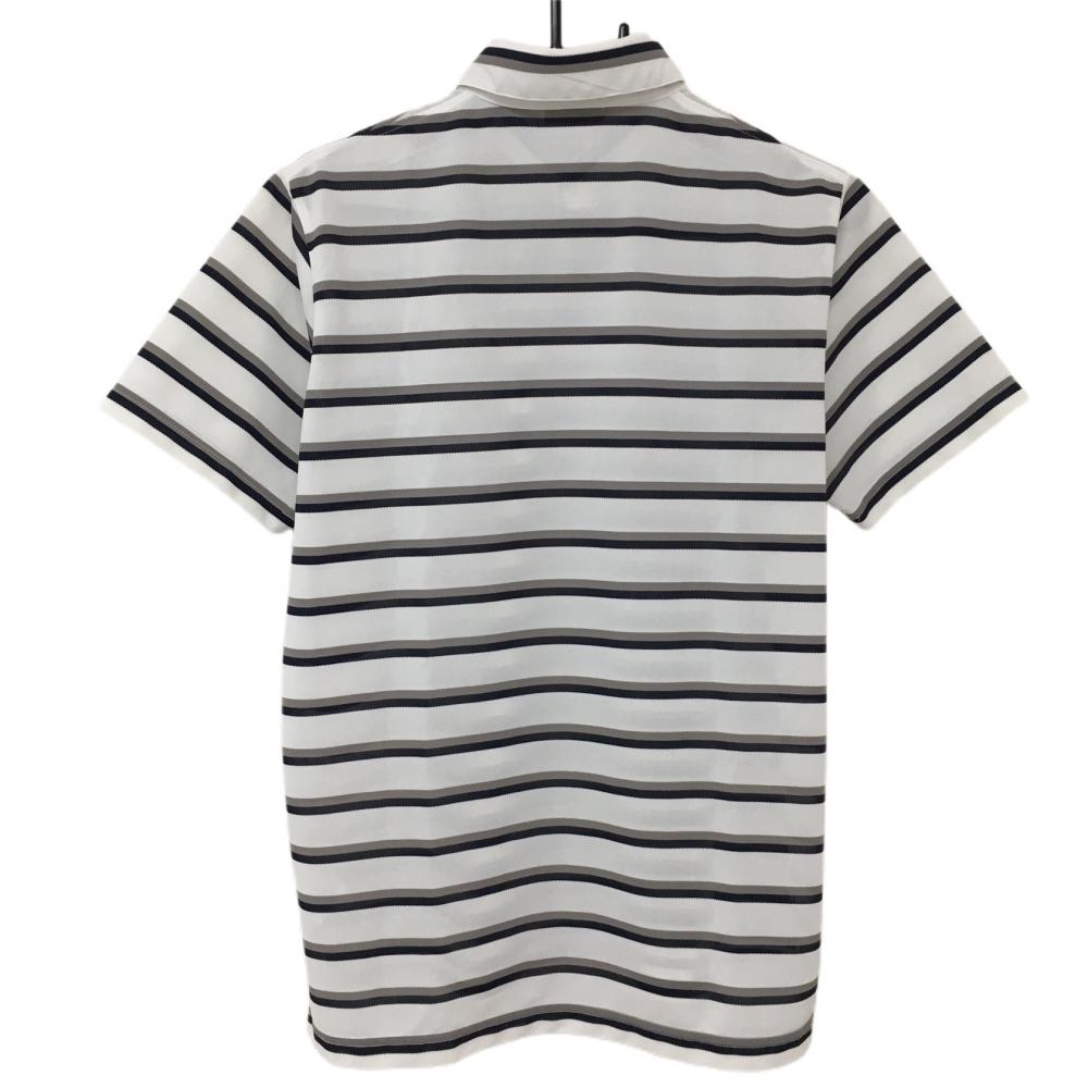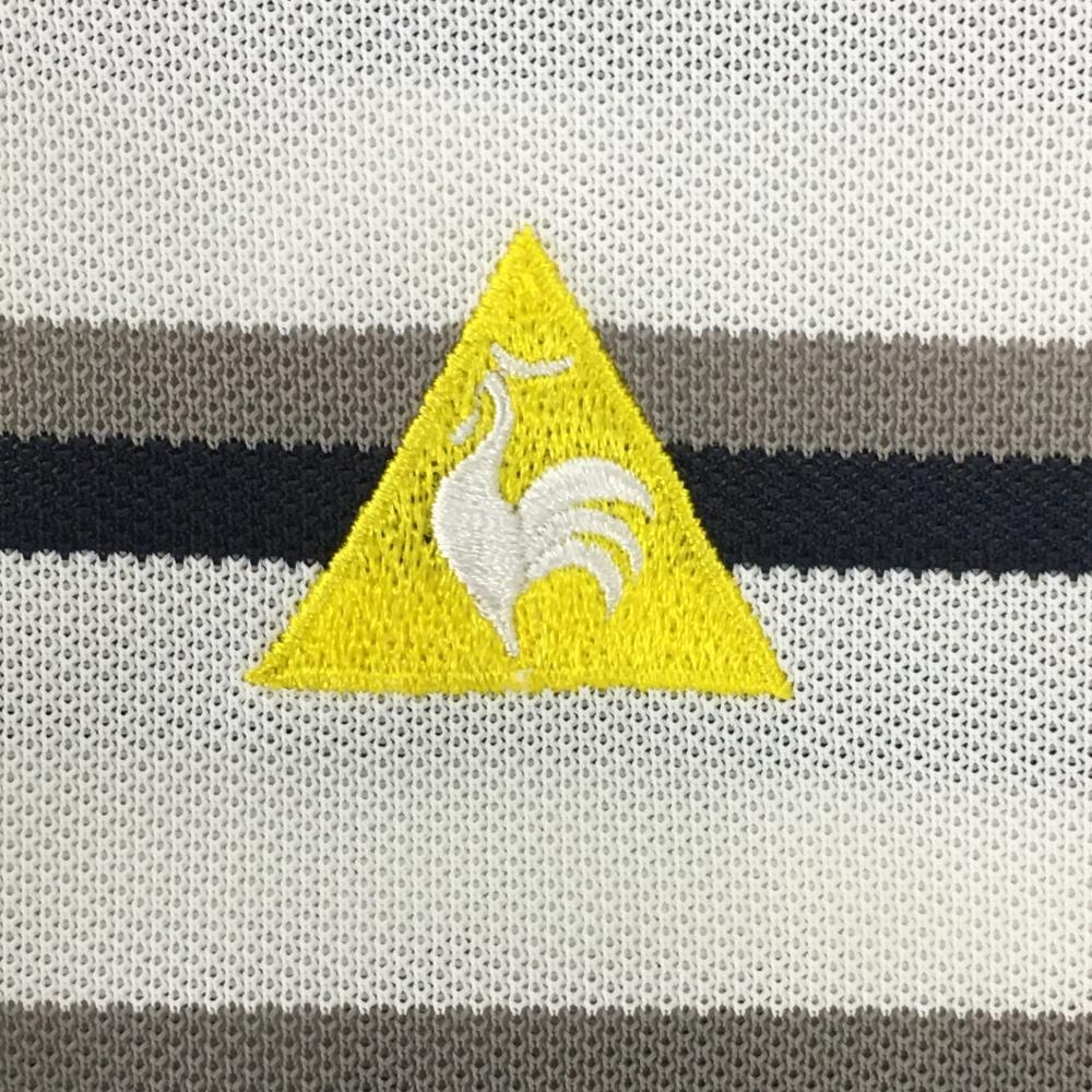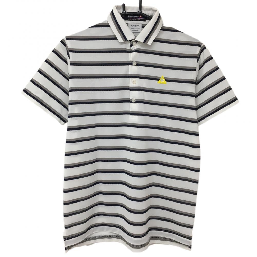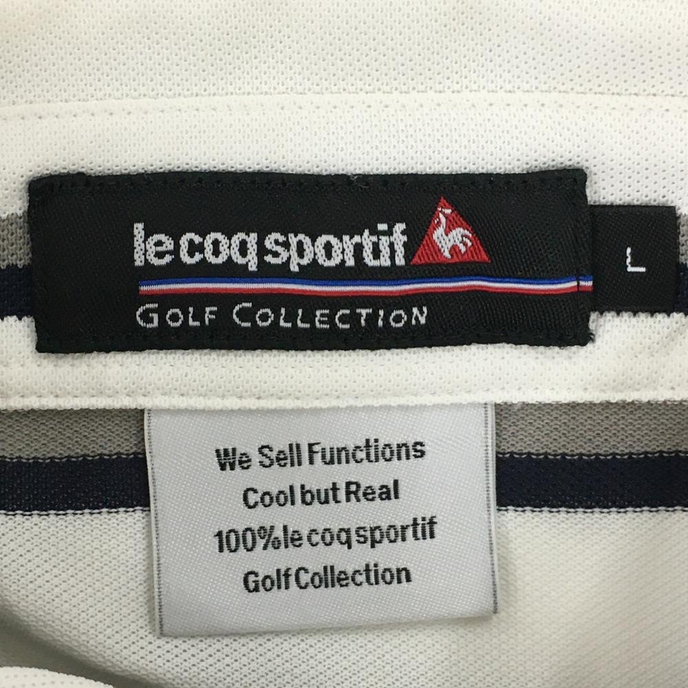 【美品】ルコック 半袖ポロシャツ 白×グレー ボーダー 総柄 ロゴ刺しゅう メンズ L ゴルフウェア le coq sportif