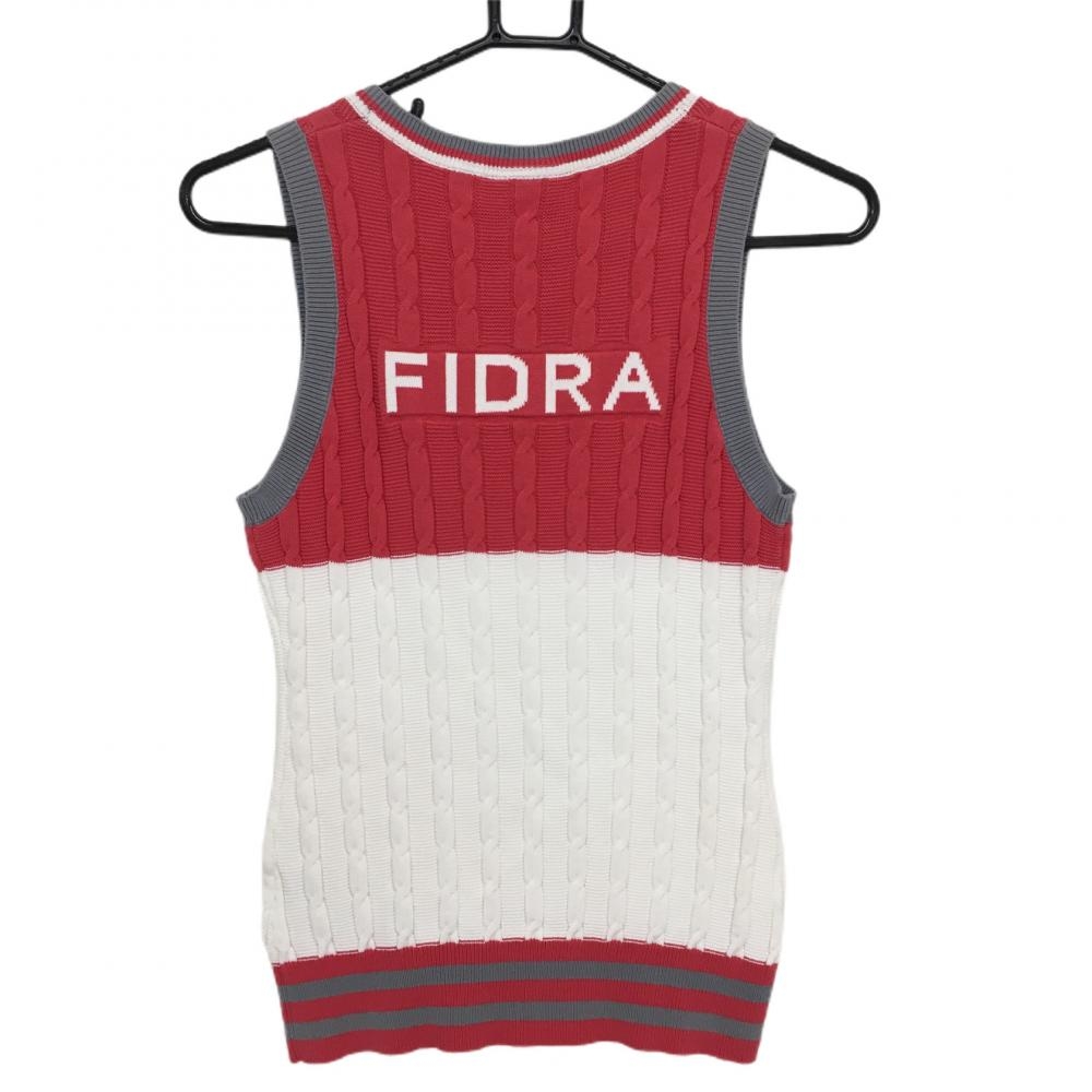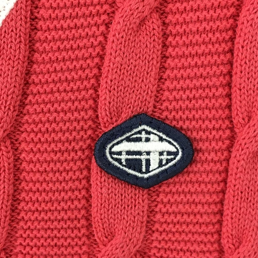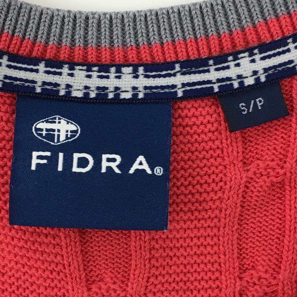 フィドラ ニットベスト ピンク×白 ケーブル編み Vネック コットン100% レディース S/P ゴルフウェア FIDRA
