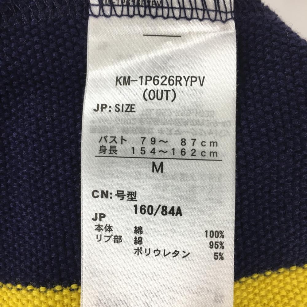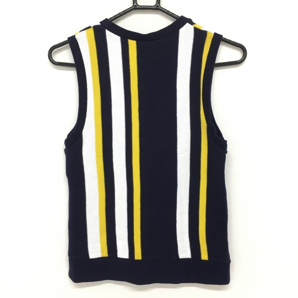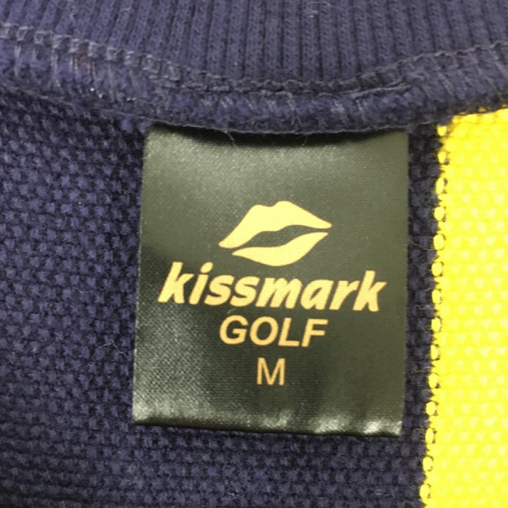 【美品】キスマーク ニットベスト ネイビー×イエロー×白 Vネック ボーダー調 レディース M ゴルフウェア Kissmark