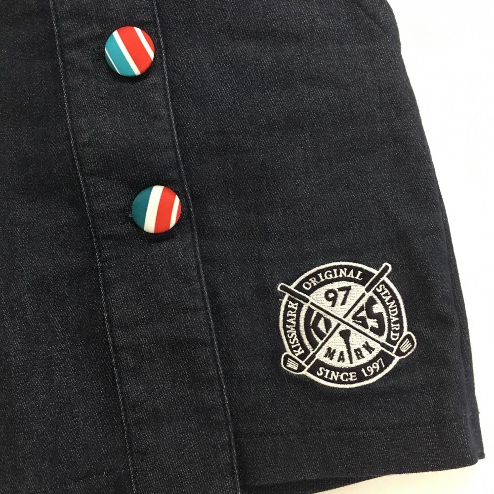 【美品】キスマークゴルフ スカート ネイビー×レッド 一部ストライプ 内側インナーパンツ レディース 7(S) ゴルフウェア Kissmark golf