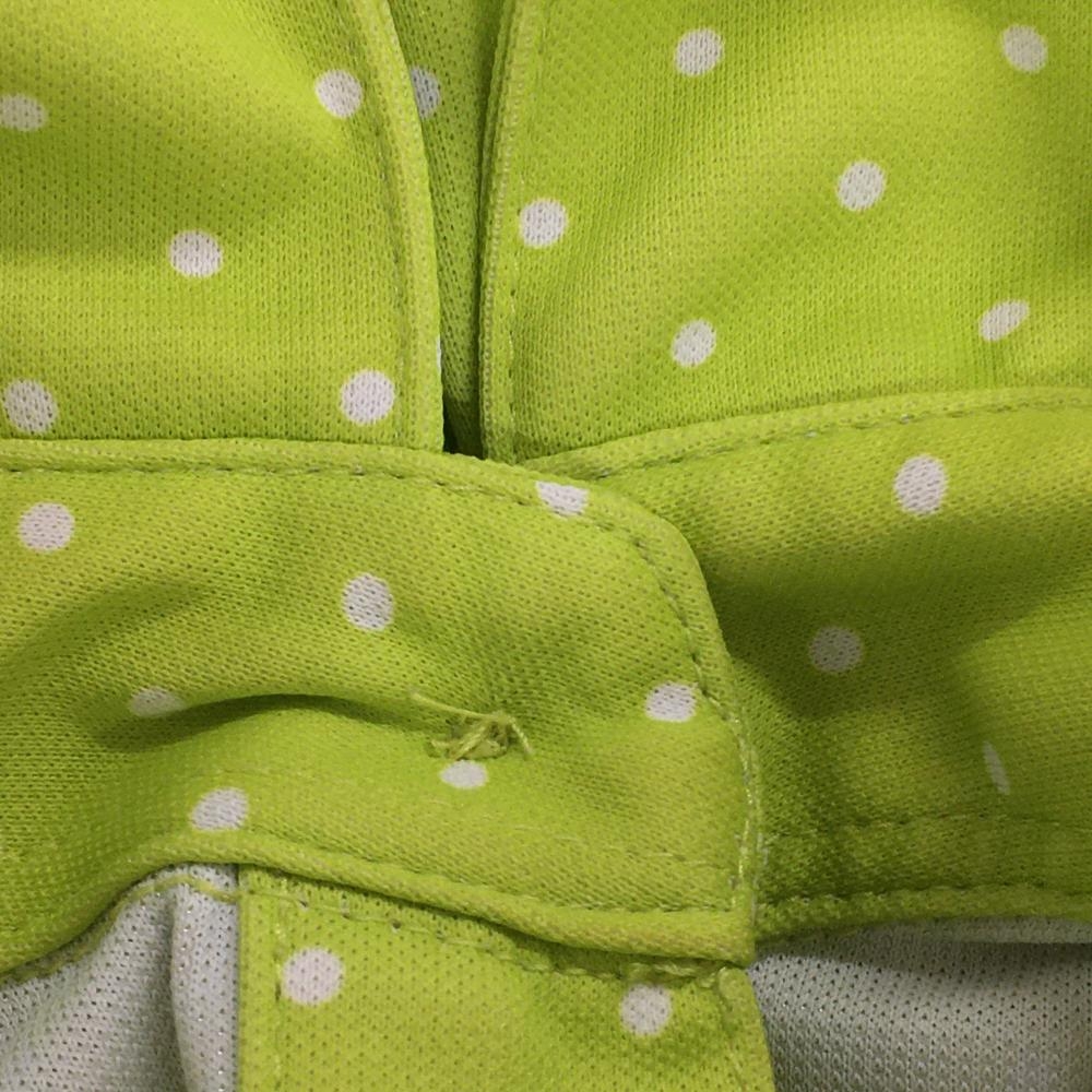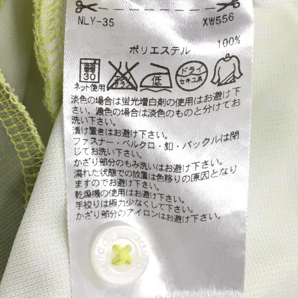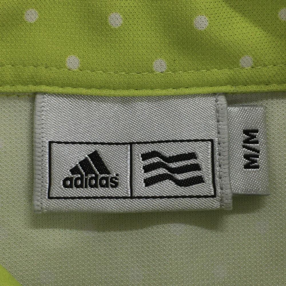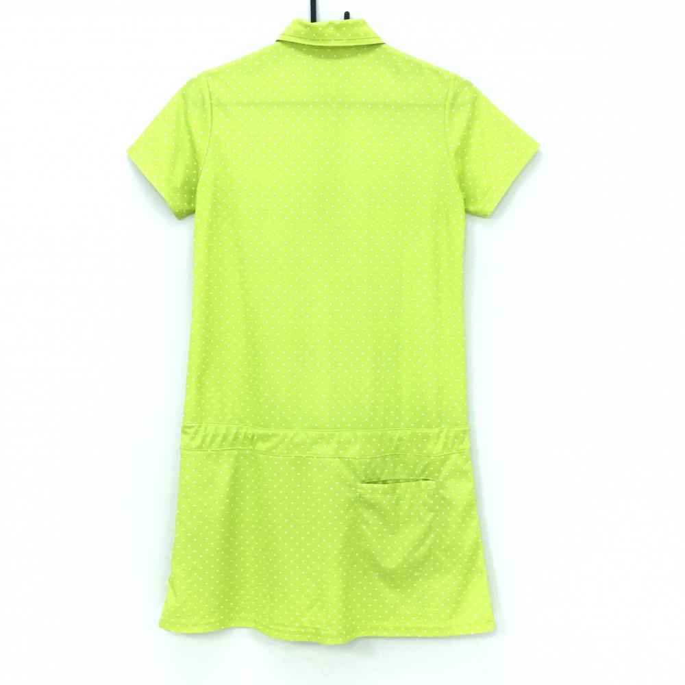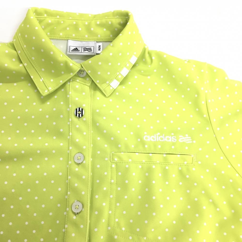 【美品】アディダス 半袖ポロワンピース イエローグリーン×白 ドット総柄 ロゴ刺しゅう レディース M/M ゴルフウェア adidas