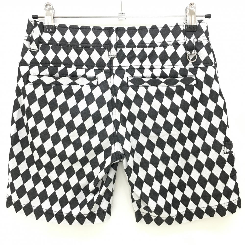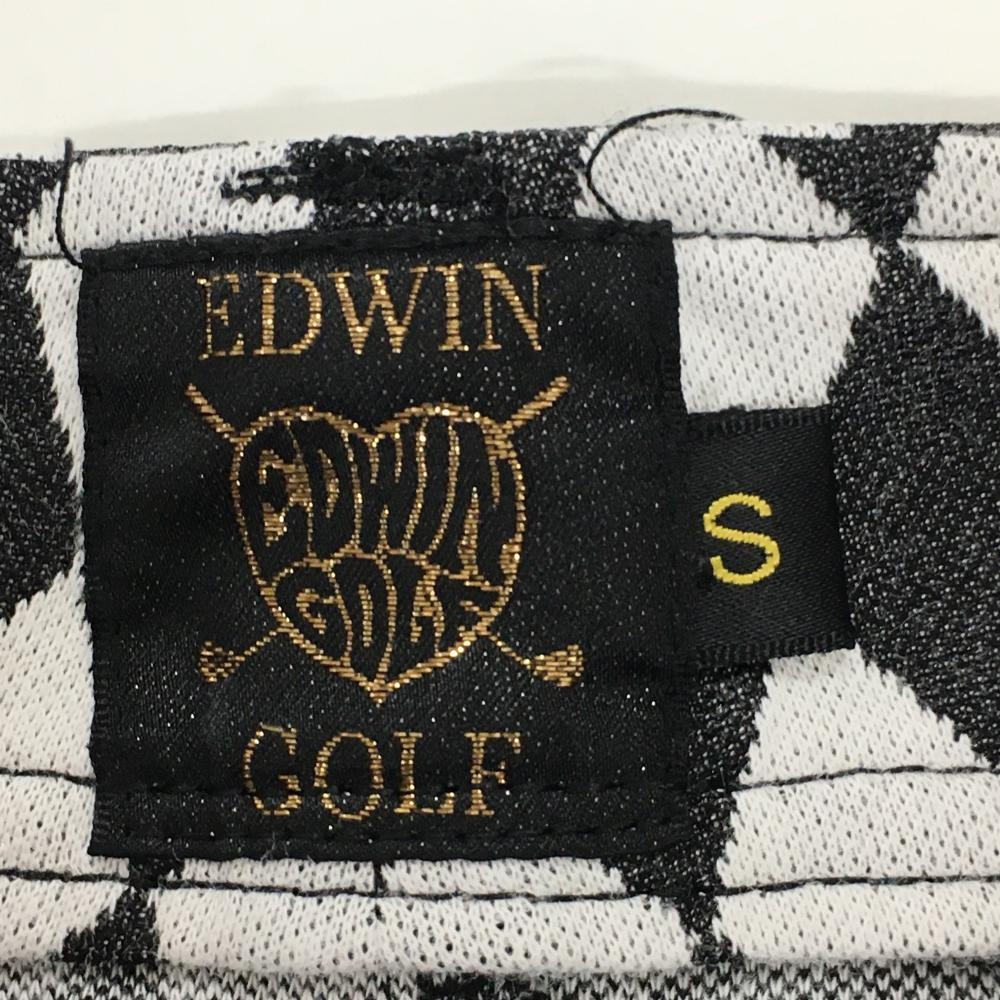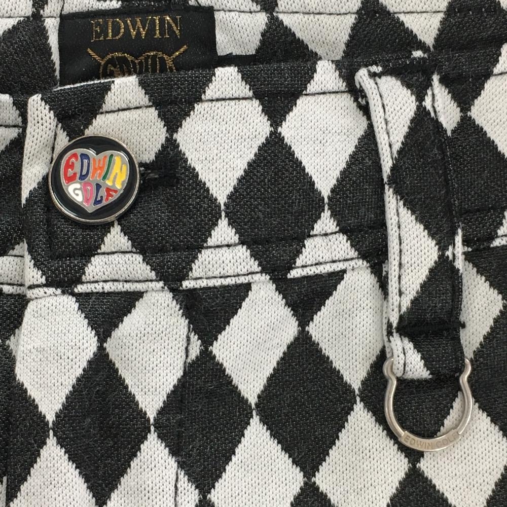 【美品】エドウィンゴルフ ショートパンツ 黒×白 ダイヤ柄 ストレッチ レディース S ゴルフウェア EDWIN GOLF
