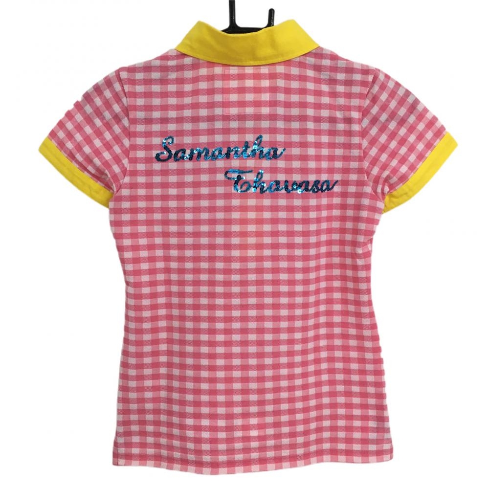 【美品】サマンサタバサ UNDER25 半袖ポロシャツ ピンク×イエロー ギンガムチェック レディース M ゴルフウェア Samantha Thavasa