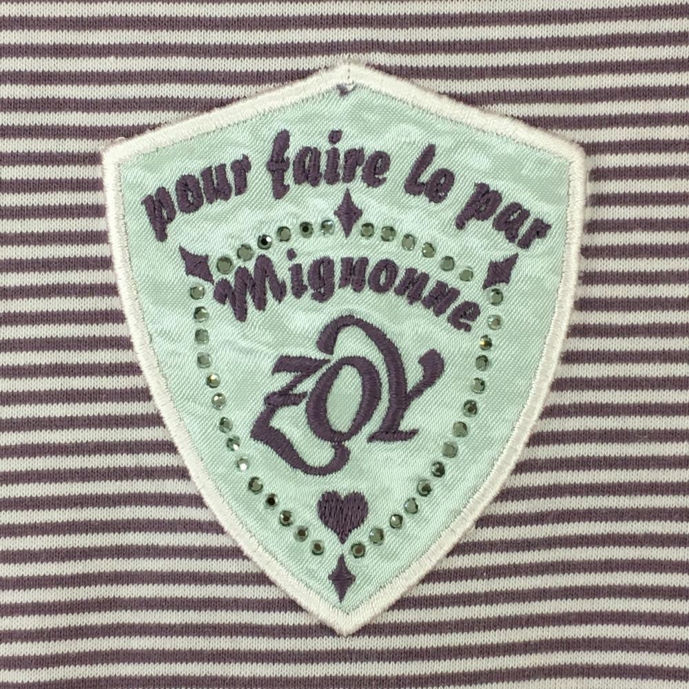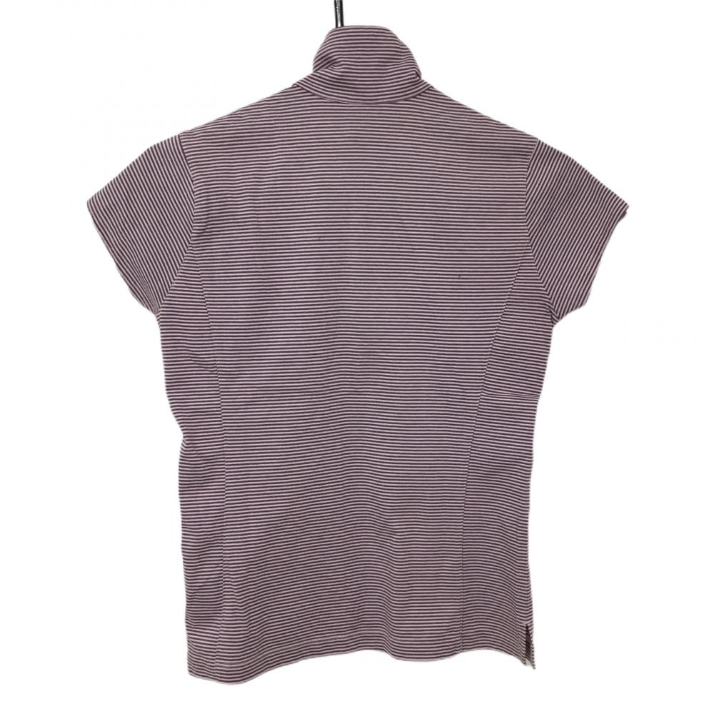 【美品】ゾーイ 半袖ハイネックシャツ パープル×ピンク ボーダー ハーフジップ 胸元ロゴ レディース 38 ゴルフウェア ZOY
