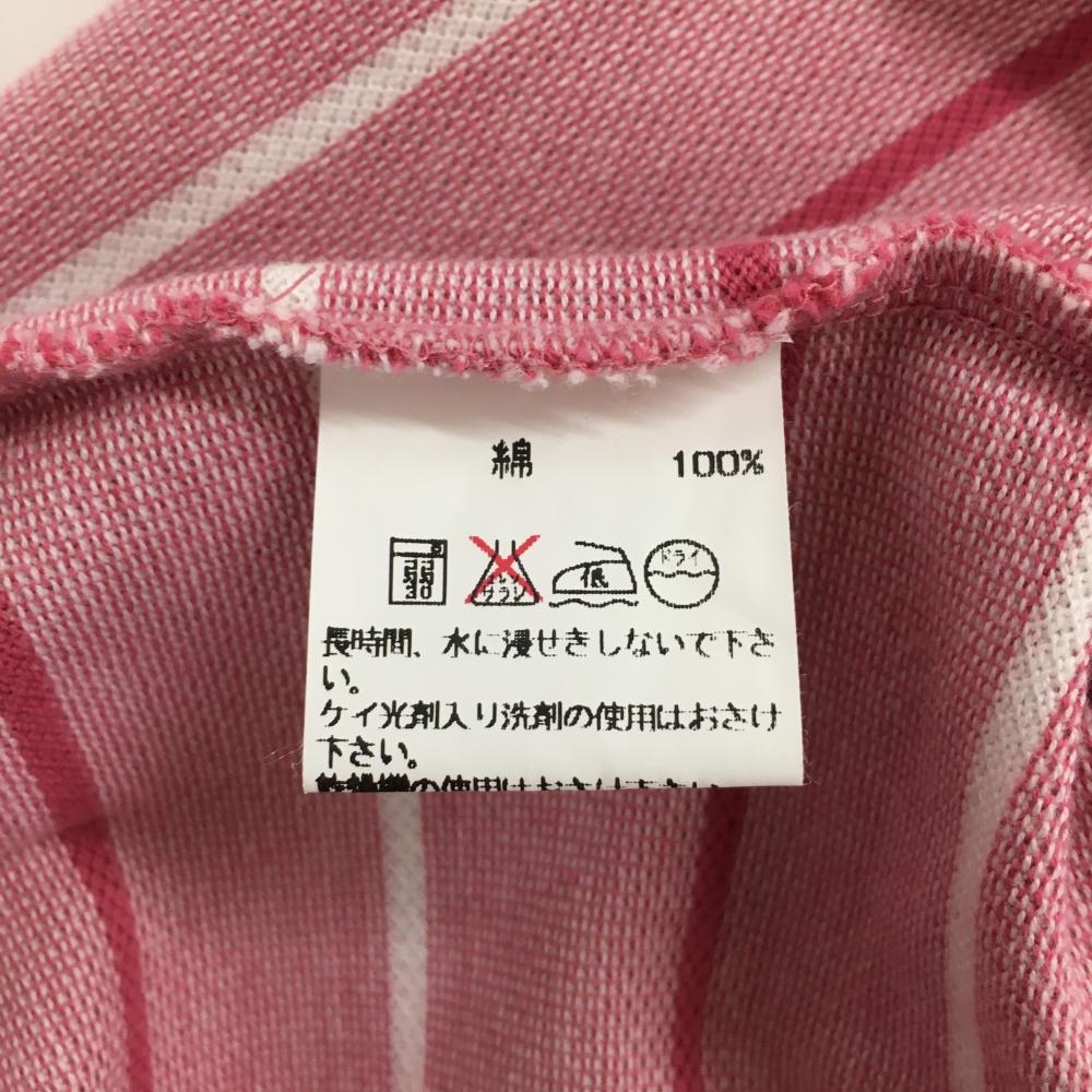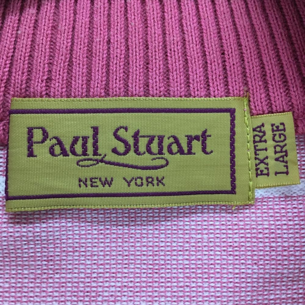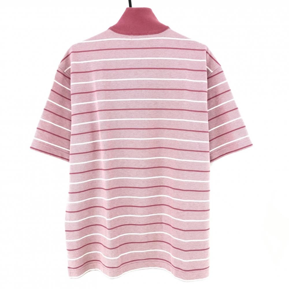 【美品】ポールスチュアートスポーツ 半袖ハイネックシャツ ピンク×白 ボーダー レディース EXTRA LARGE ゴルフウェア Paul Stuart SPORT