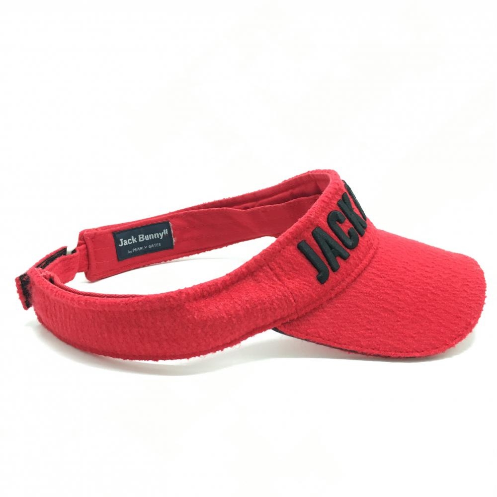 【美品】ジャックバニー サンバイザー レッド×黒 立体ロゴ刺しゅう 微起毛素材、 ゴルフウェア Jack Bunny