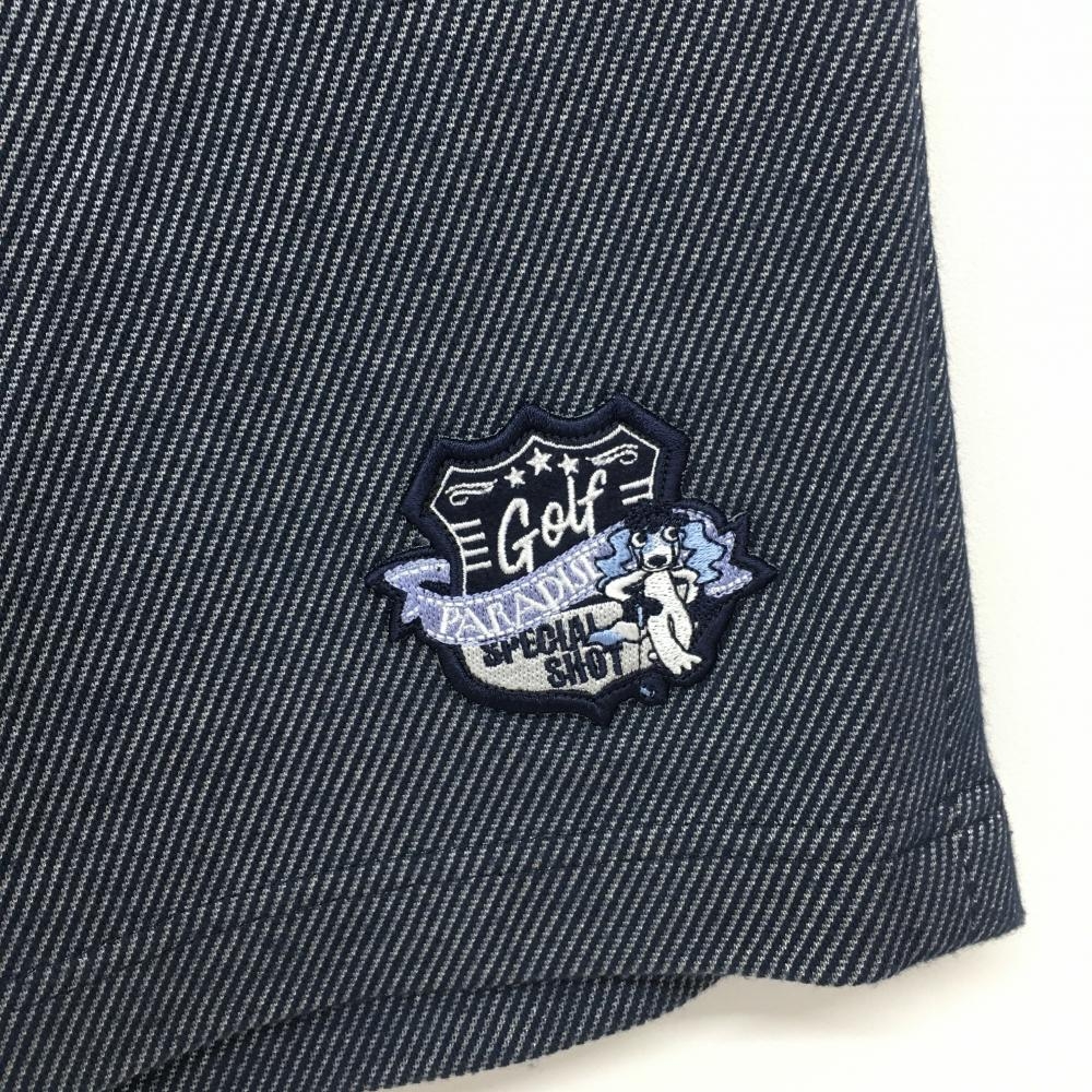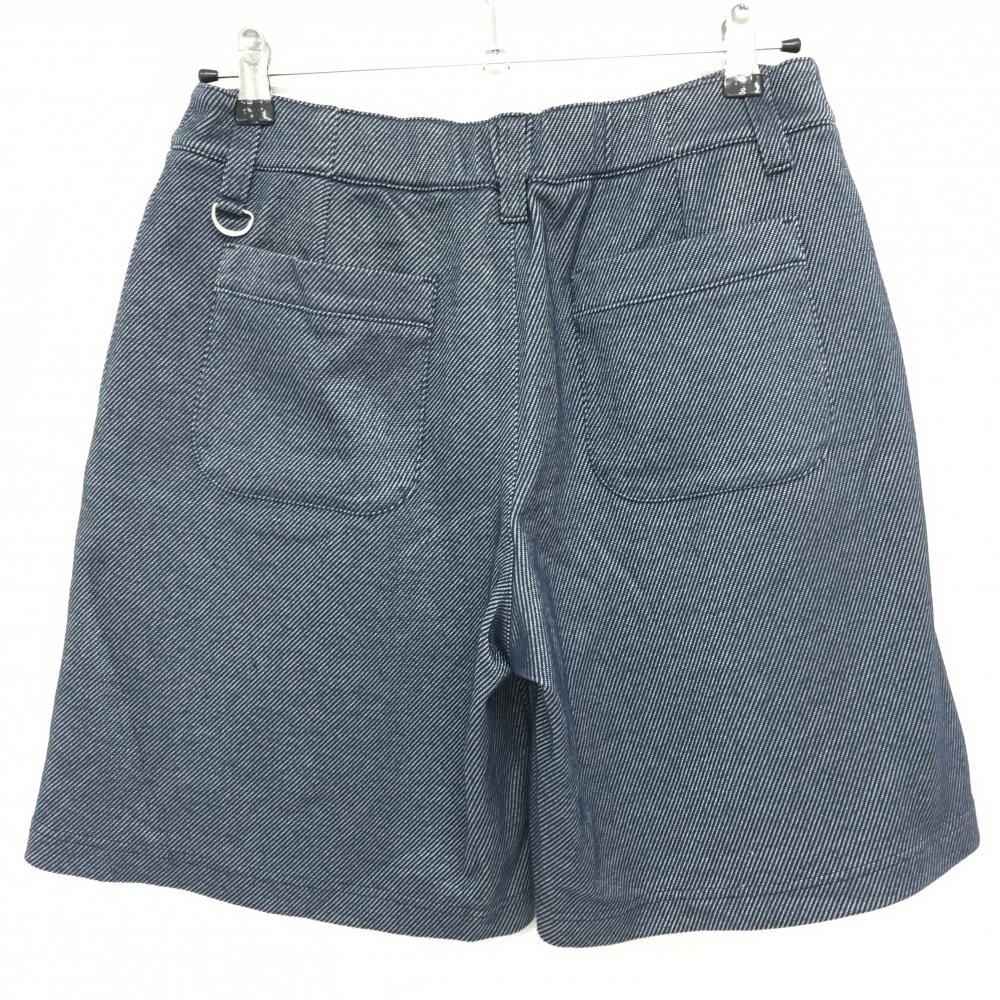 【超美品】MUスポーツ ハーフパンツ ネイビー×白系 斜めストライプ織生地 レディース 44(XL) ゴルフウェア M・U SPORTS