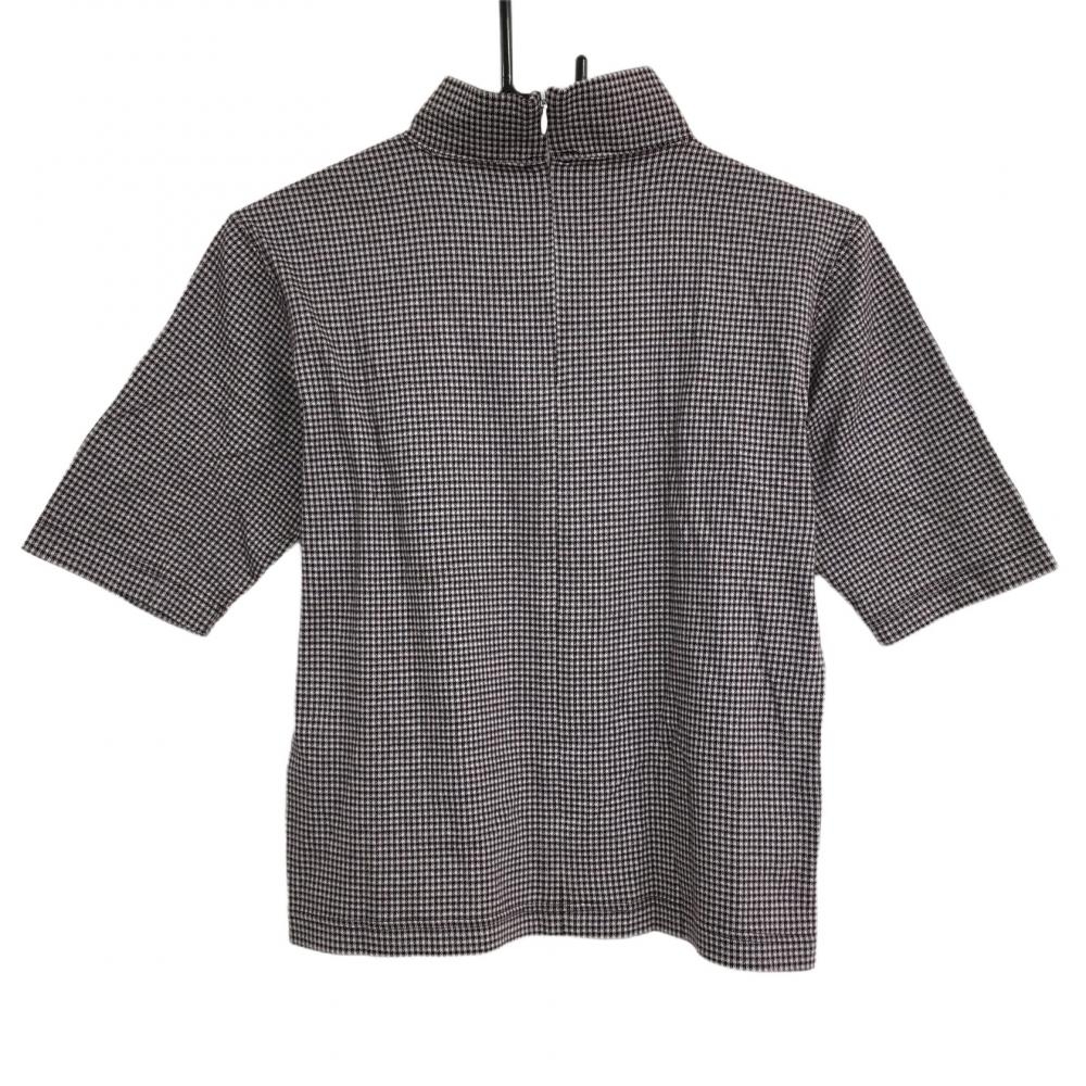 【超美品】ゾーイ 半袖ハイネックシャツ ブラウン×白 総柄 ネックジップ ロゴ刺しゅう レディース ゴルフウェア ZOY