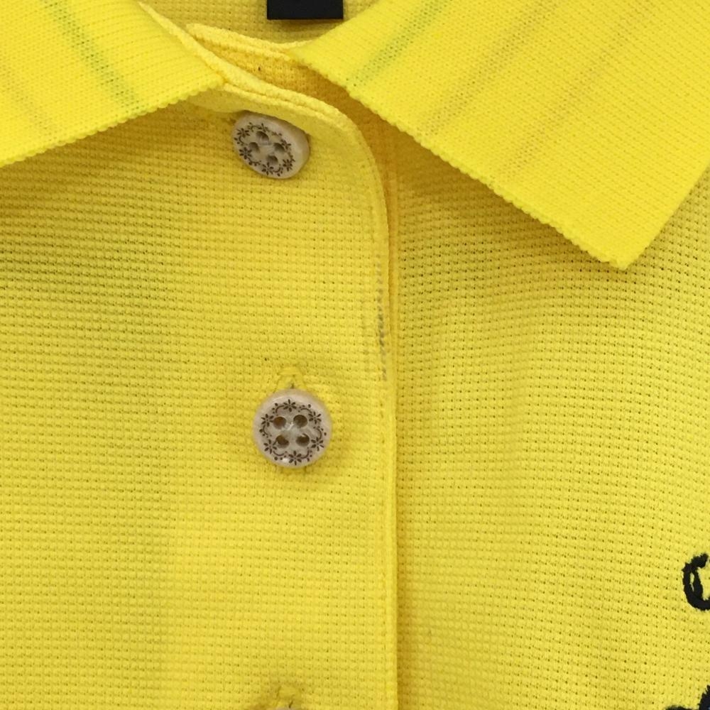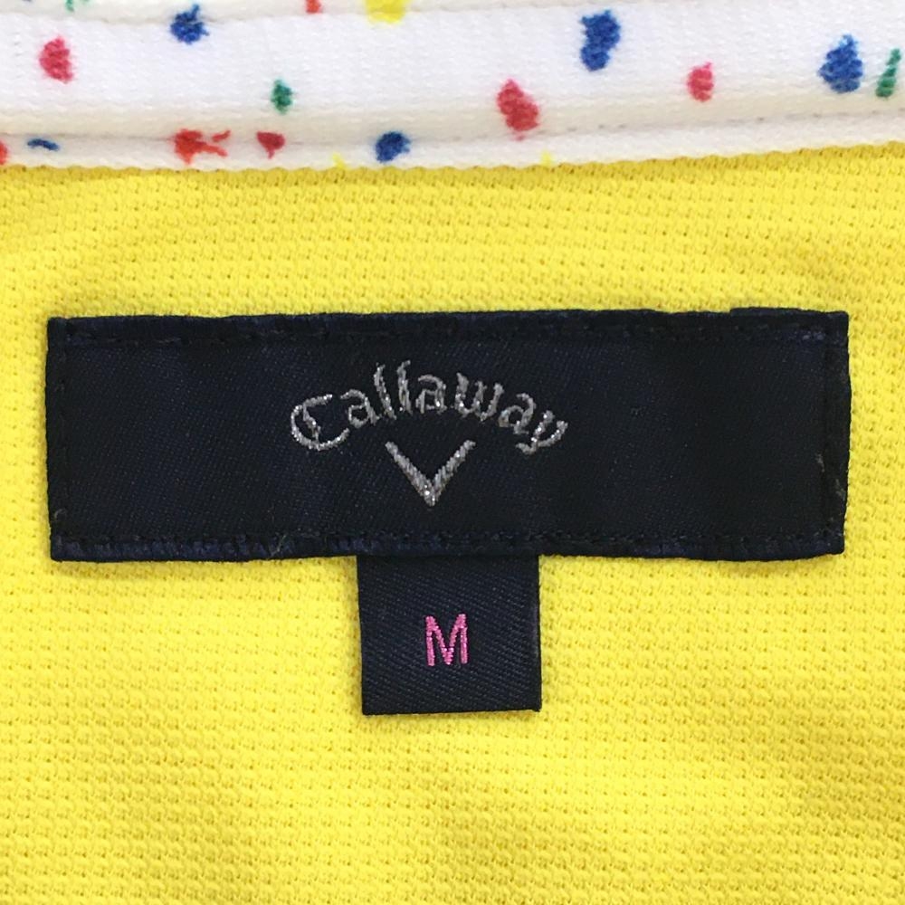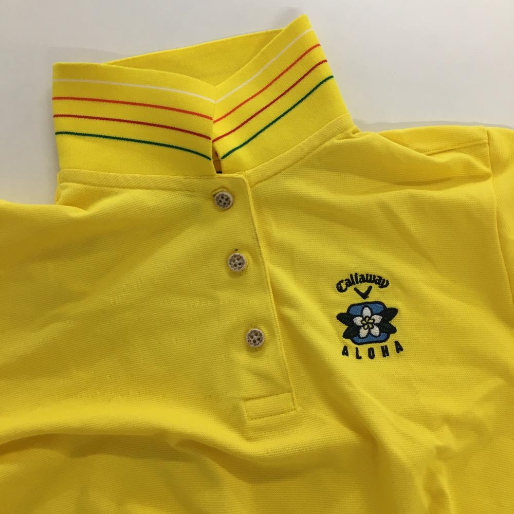 キャロウェイ 半袖ポロシャツ イエロー ロゴ刺しゅう 花 襟裏3ライン レディース M ゴルフウェア Callaway