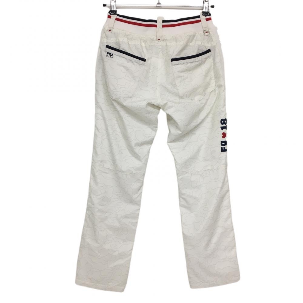 フィラゴルフ パンツ アイボリー×レッド 総柄 ウエスト一部ゴム サイド一部切替 ロゴ刺しゅう レディース S ゴルフウェア FILA GOLF