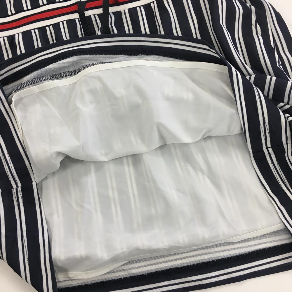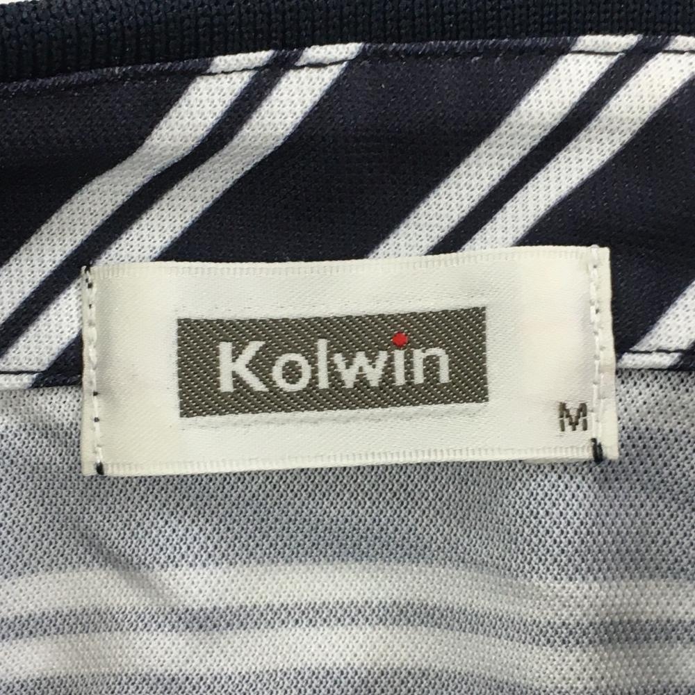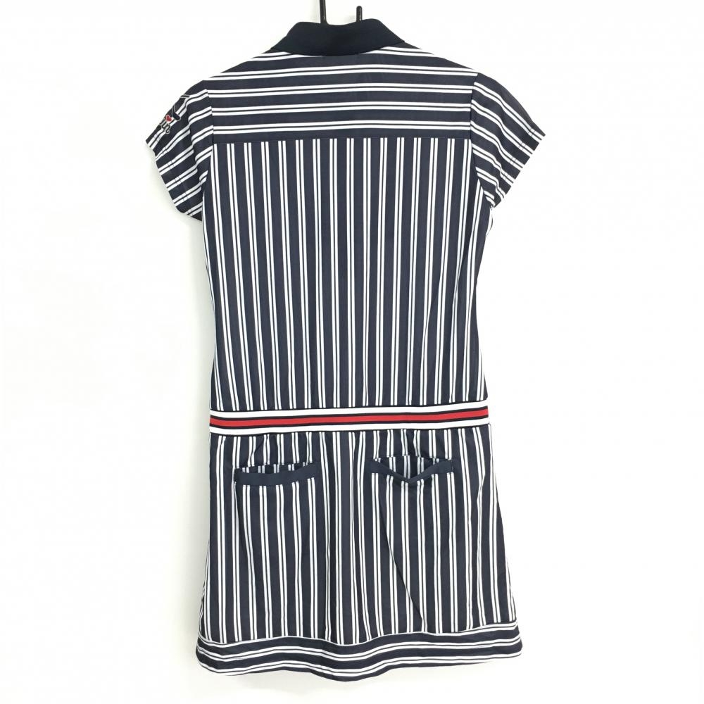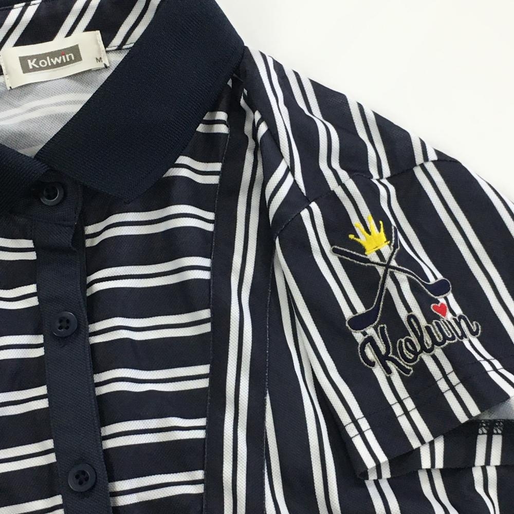 【美品】コルウィン 半袖ポロワンピース ネイビー×白 ストライプ 袖ロゴ刺しゅう 裏地付き レディース M ゴルフウェア Kolwin