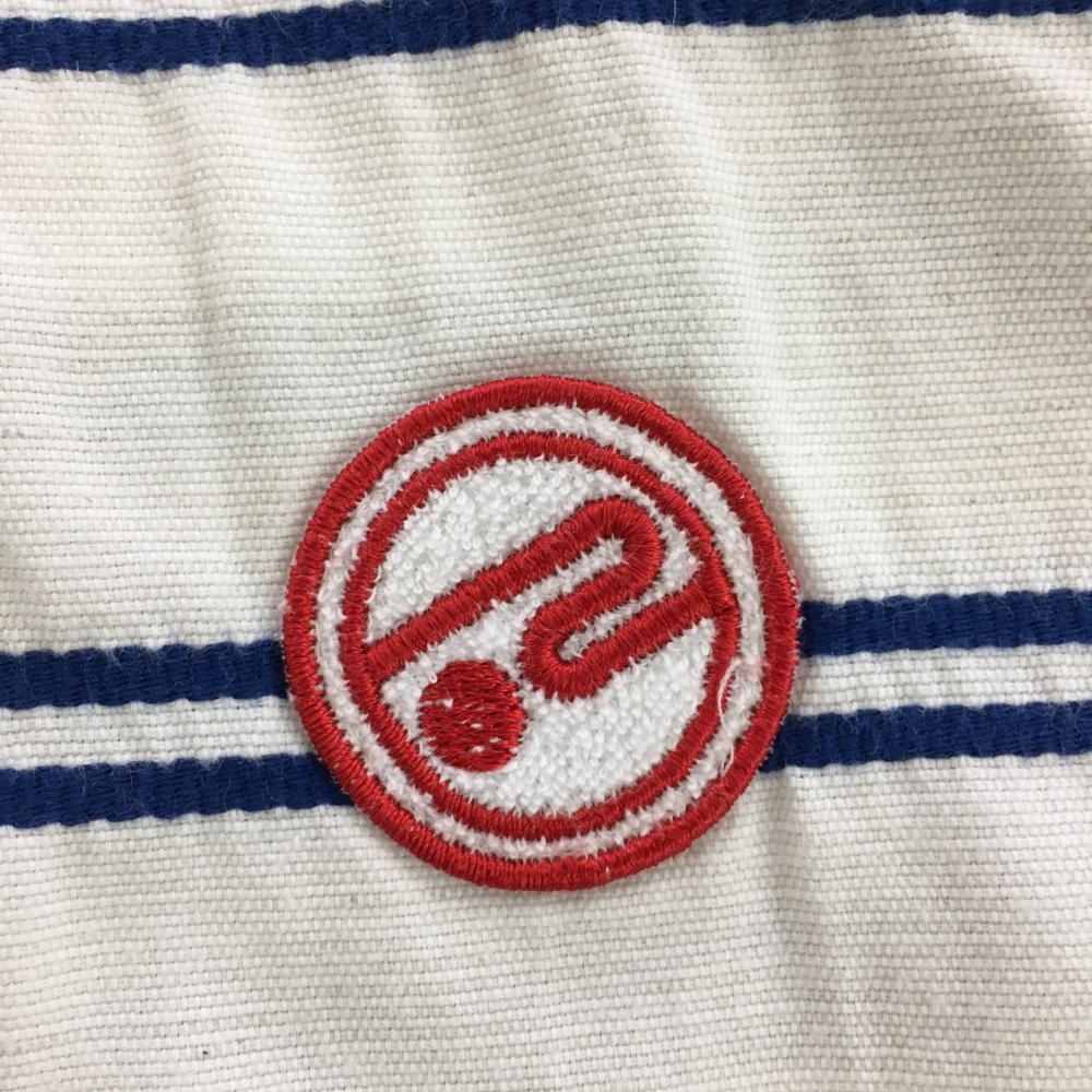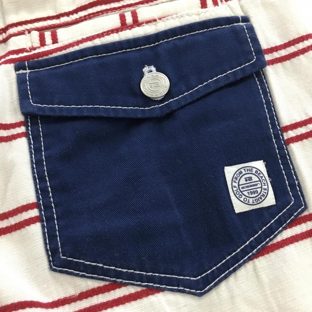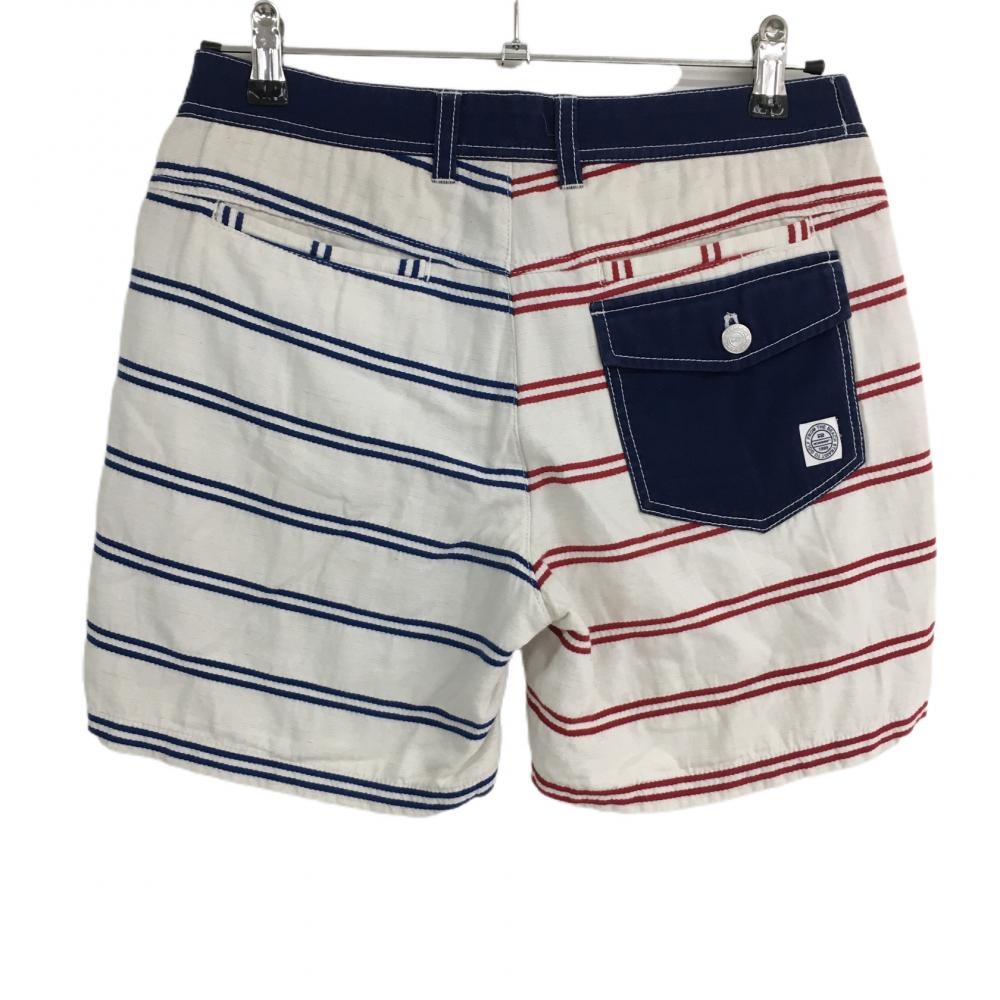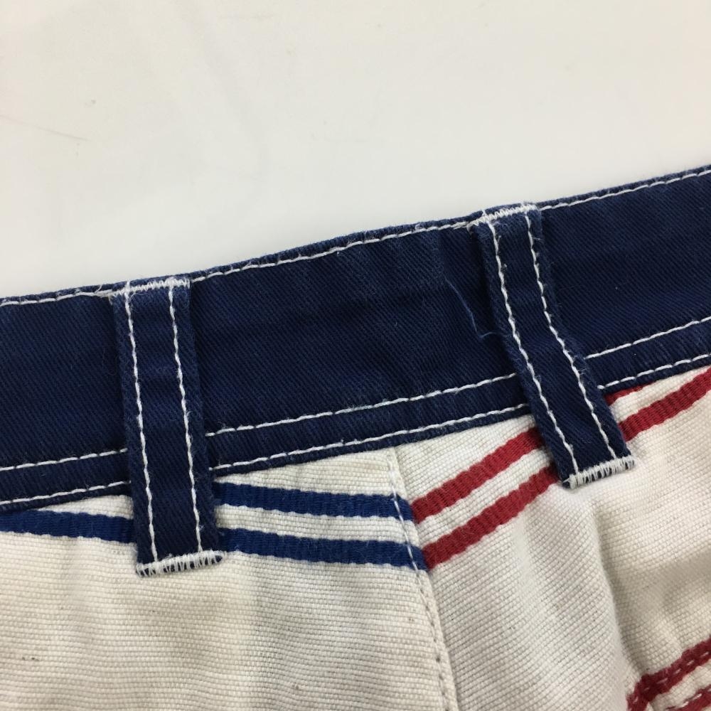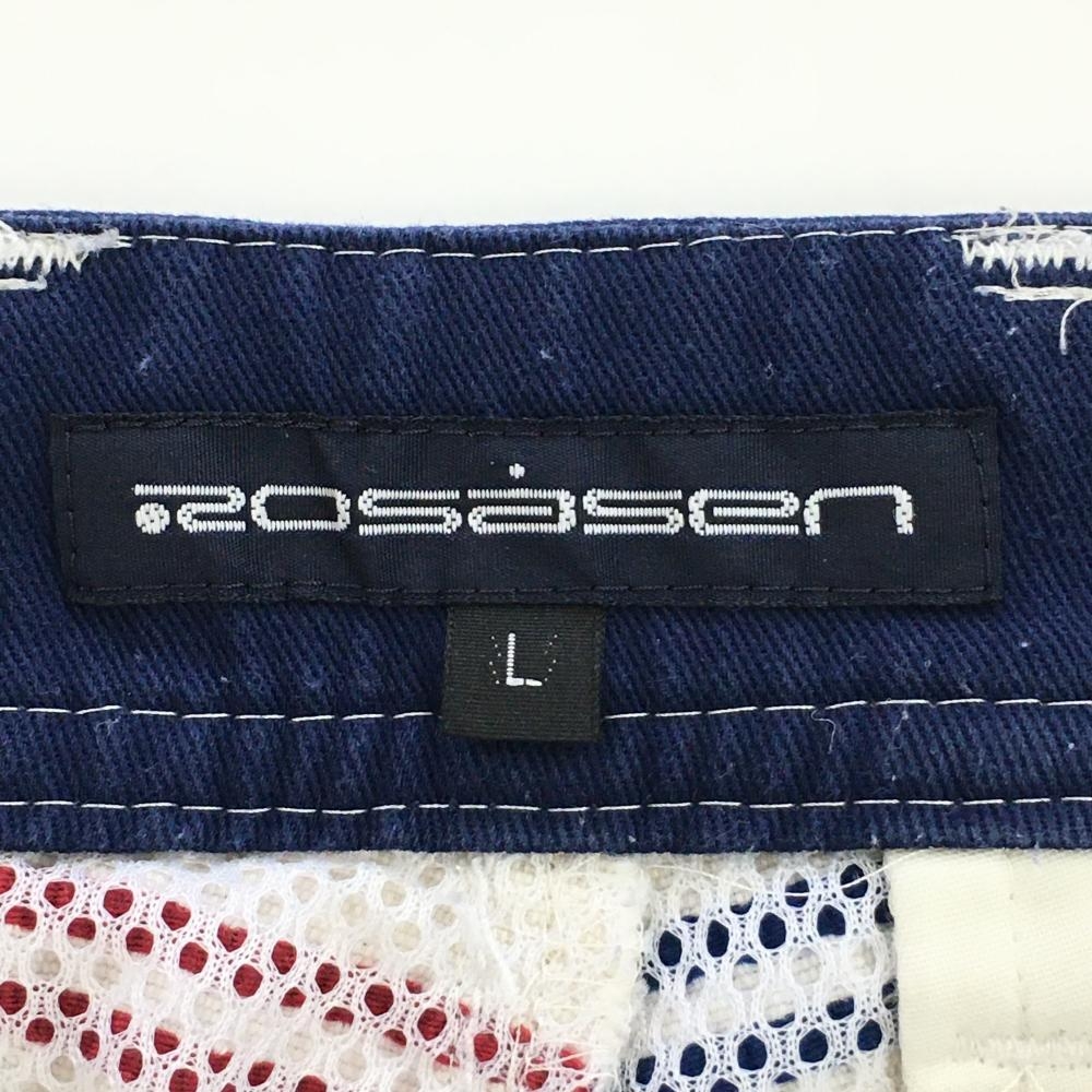 ロサーセン ショートパンツ 白×ネイビー ボーダー柄 ロゴワッペン レディース L ゴルフウェア Rosasen