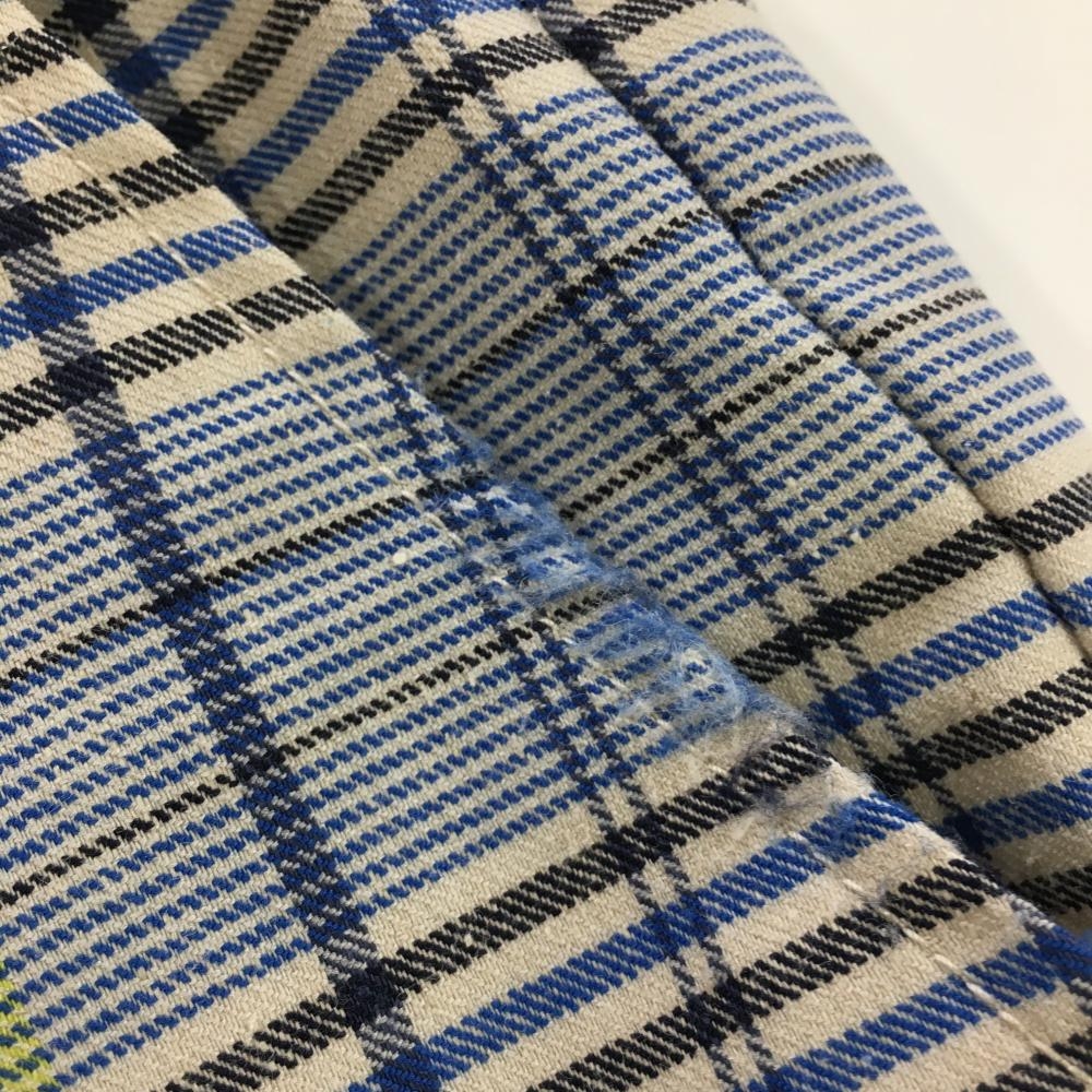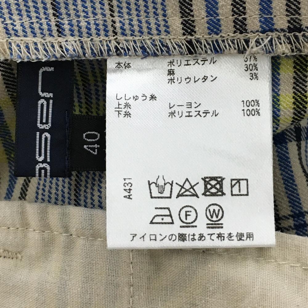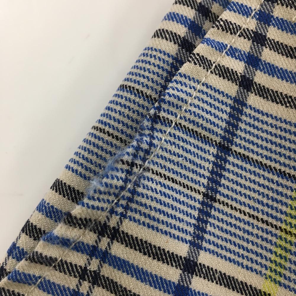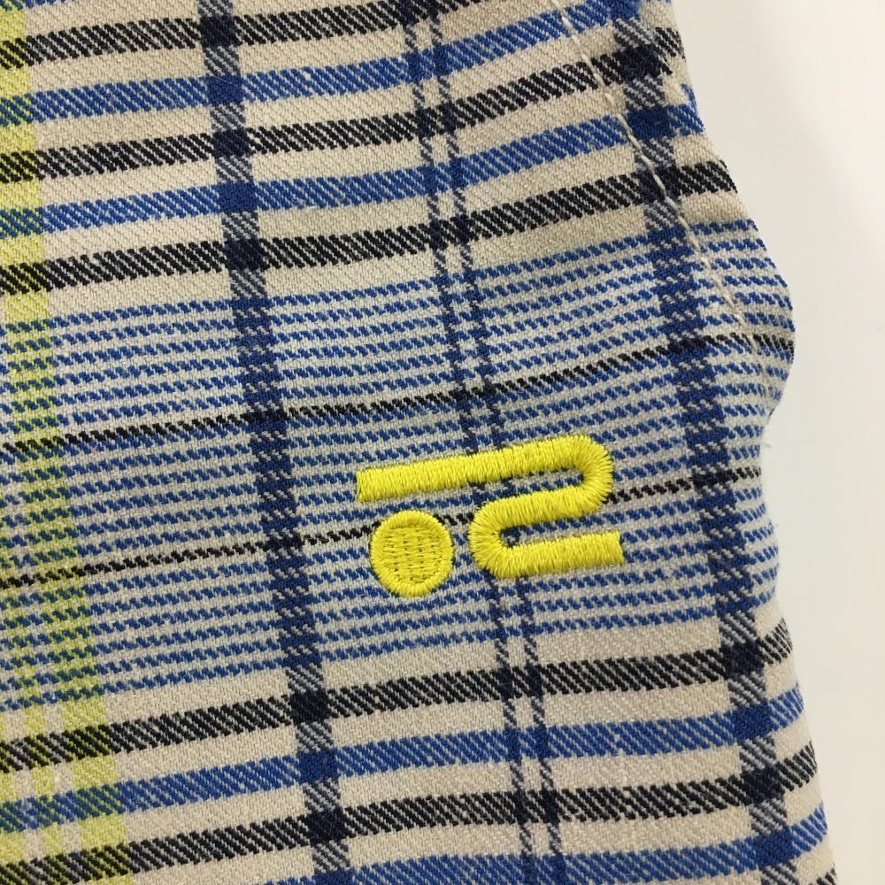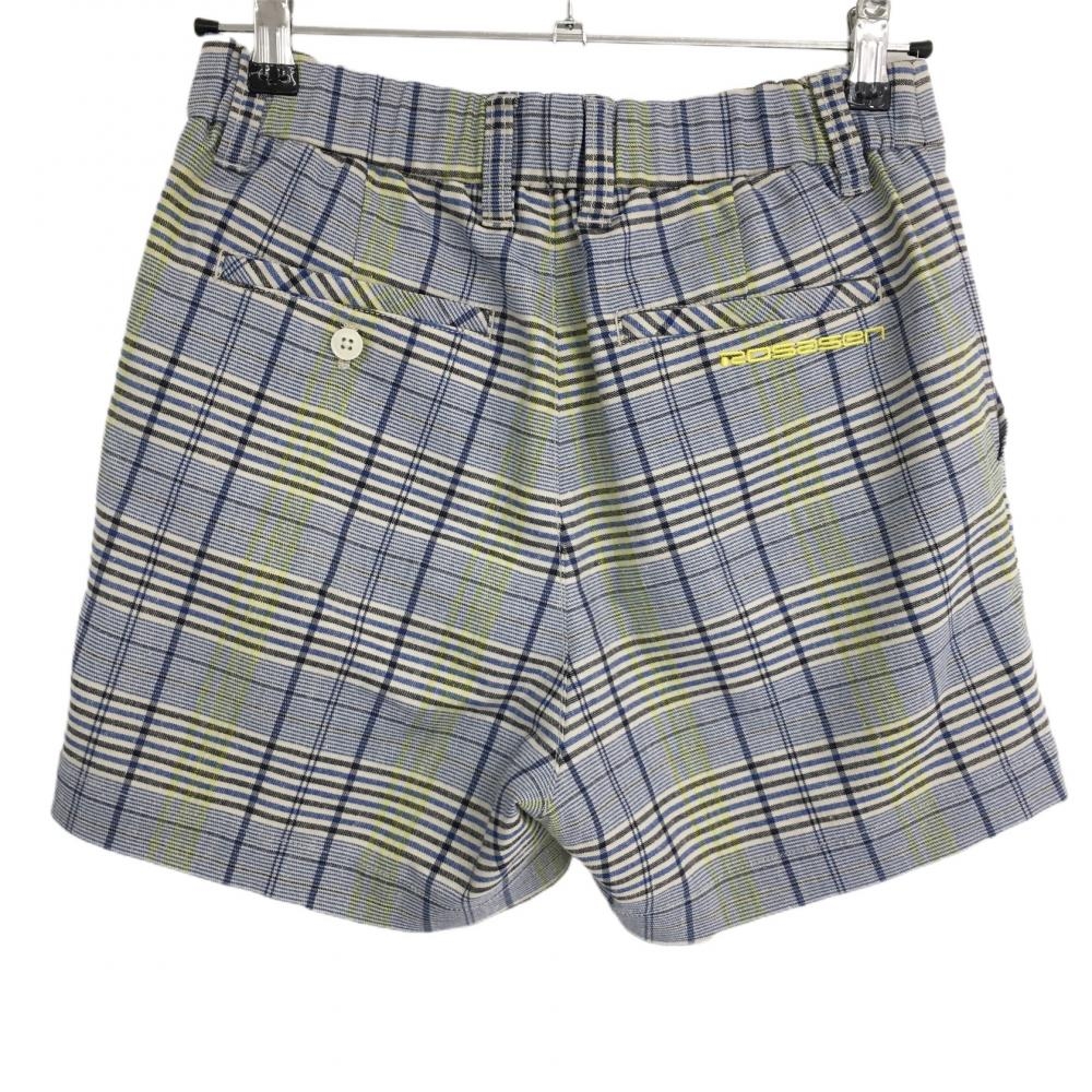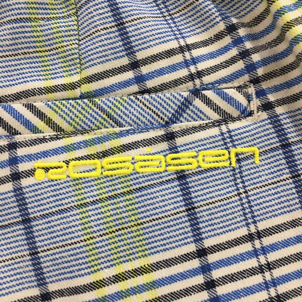 ロサーセン ショートパンツ ブルー×イエロー 格子柄 ロゴ刺しゅう ウエスト一部ゴム レディース 40(M) ゴルフウェア Rosasen
