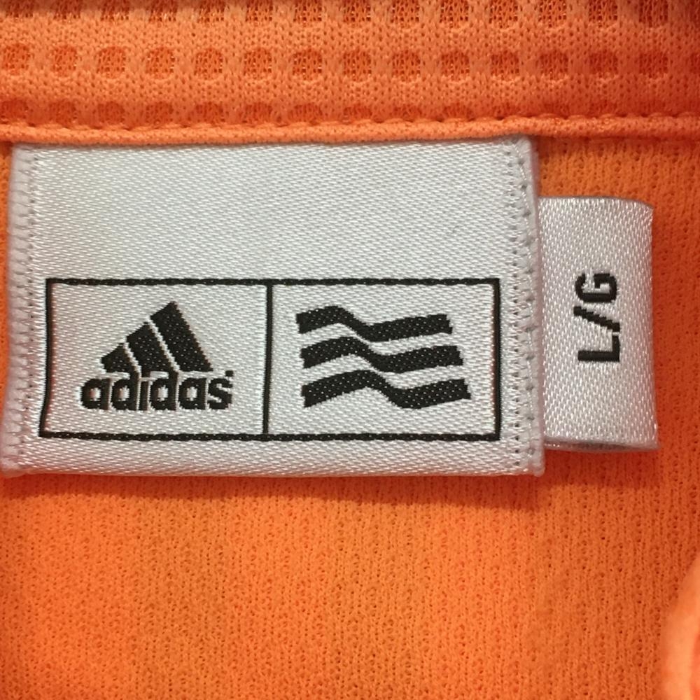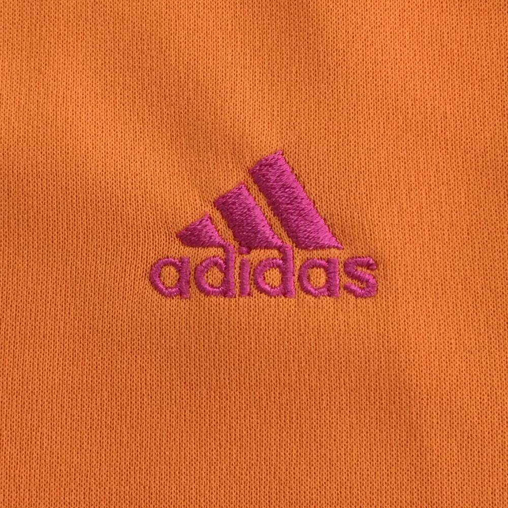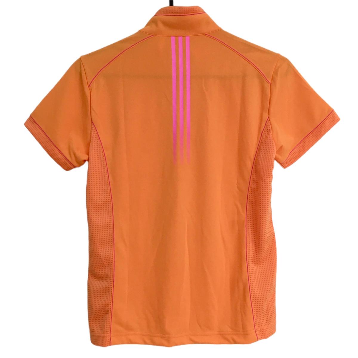【超美品】アディダス 半袖ハイネックシャツ オレンジ×ピンク ハーフジップ サイドメッシュ地切替 レディース L/G ゴルフウェア adidas