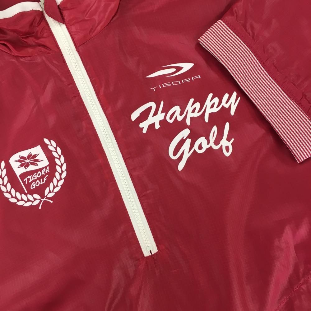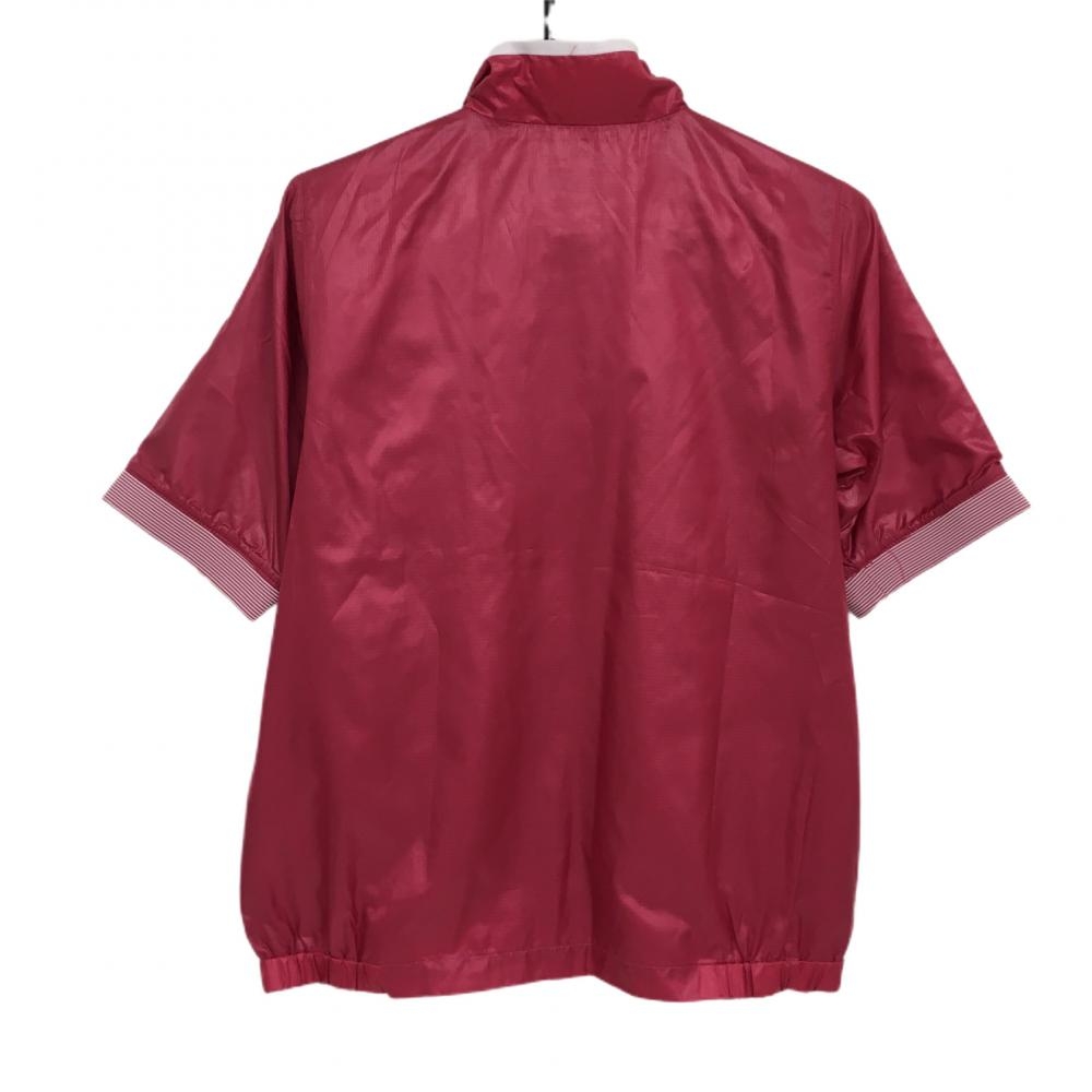 【超美品】ティゴラ 半袖ブルゾン レッド×白 ハーフジップ 袖口ボーダー レディース S ゴルフウェア TIGORA