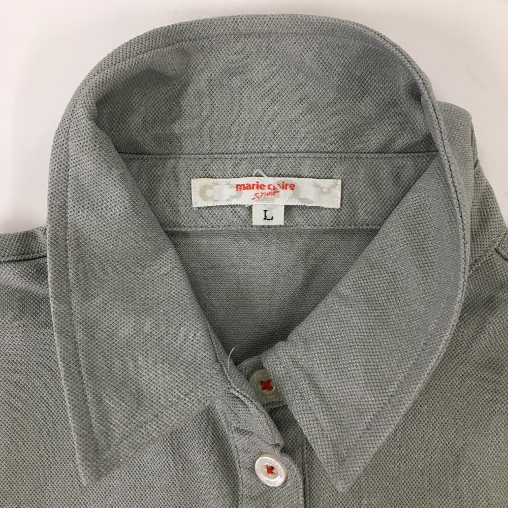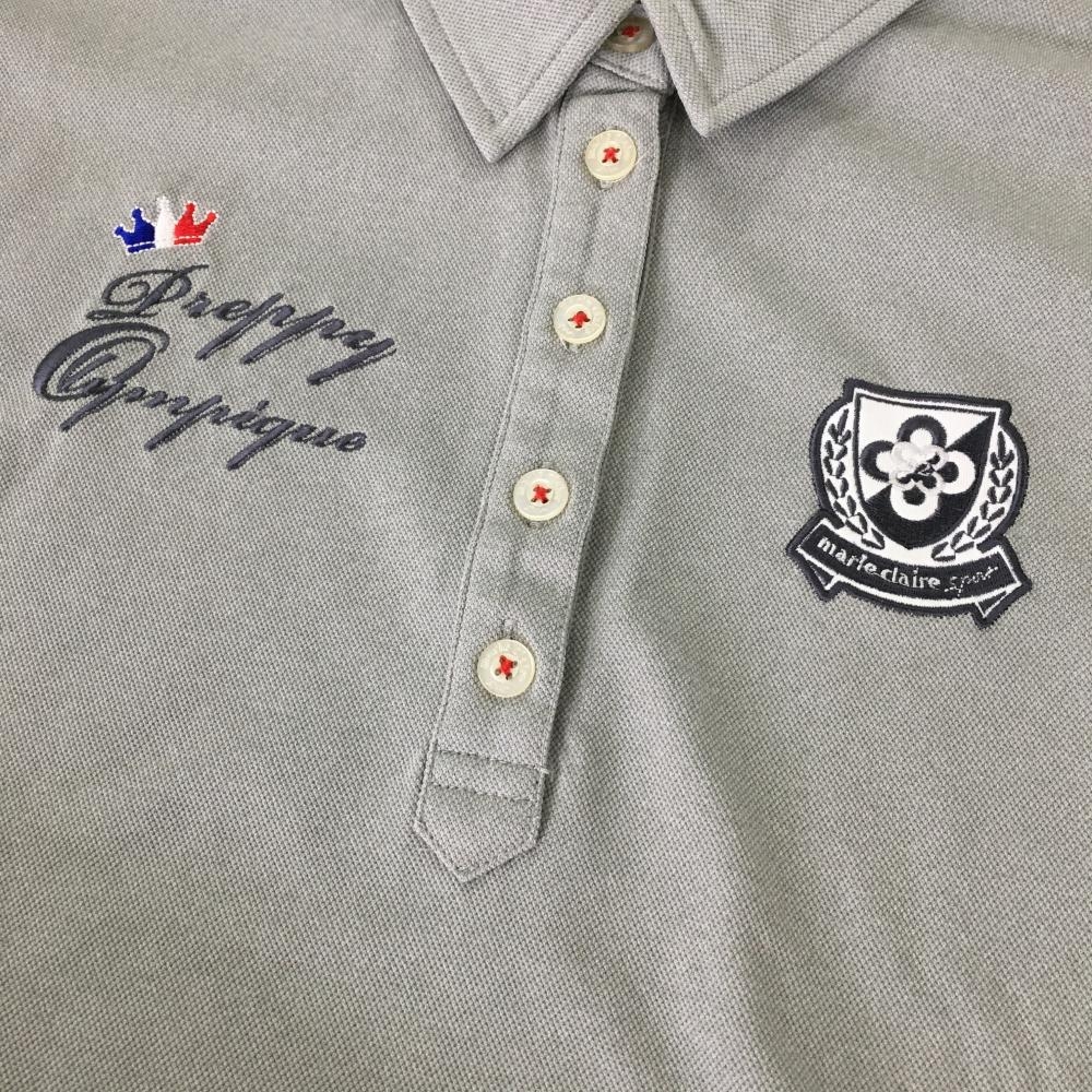 マリクレール 半袖ポロシャツ グレー ワッペン レディース L ゴルフウェア marie claire