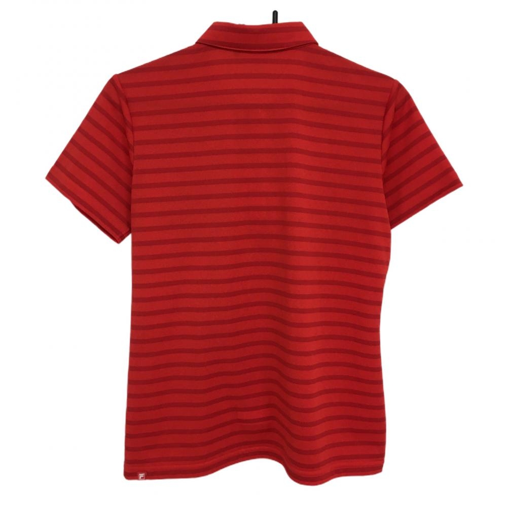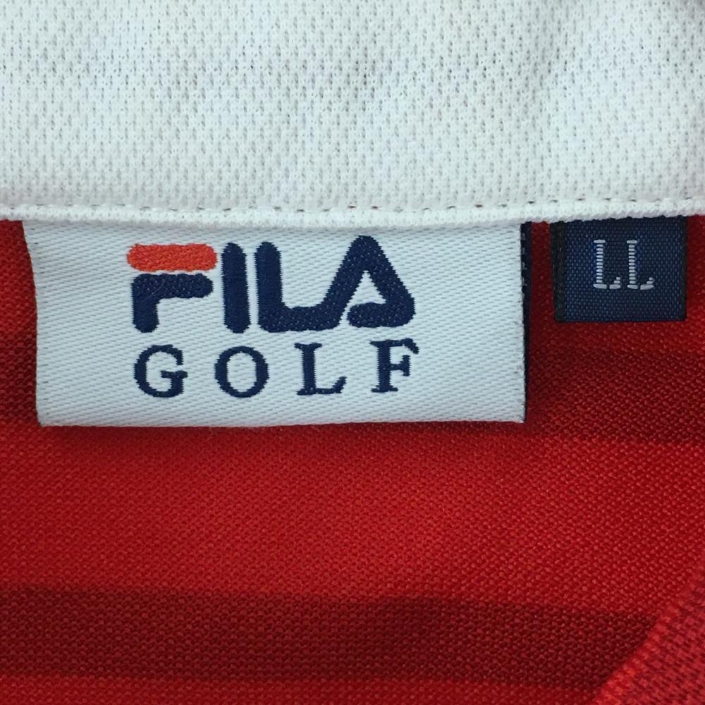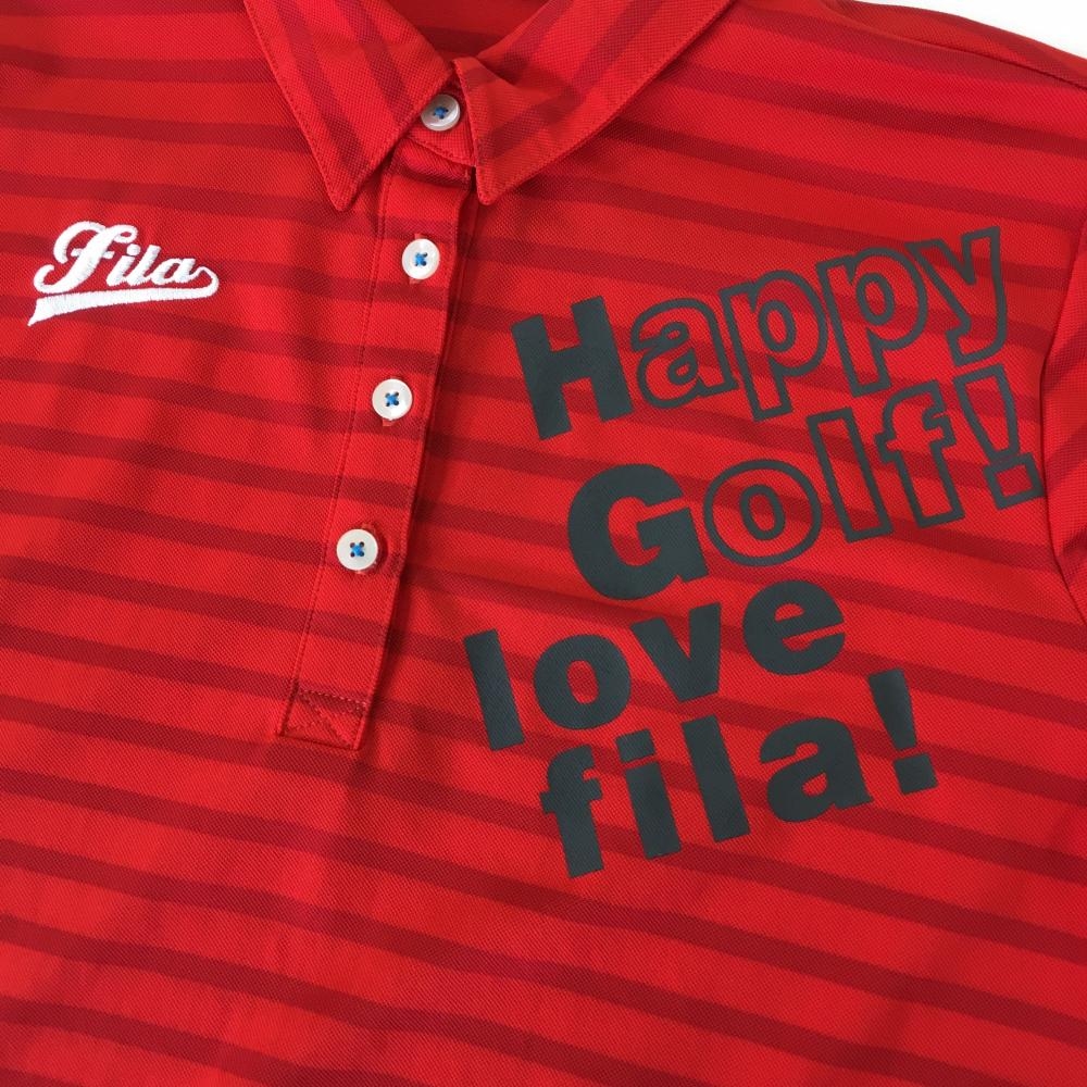 フィラゴルフ 半袖ポロシャツ レッド ボーダー 胸元英字 レディース LL ゴルフウェア FILA GOLF