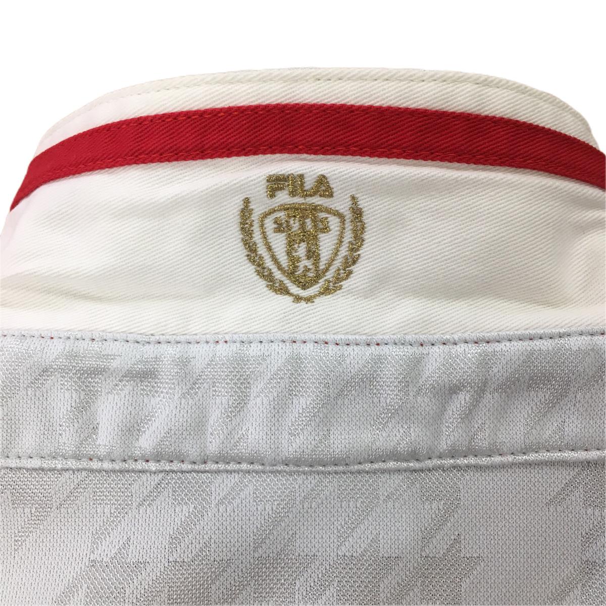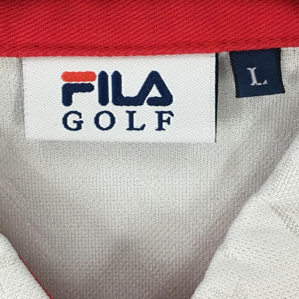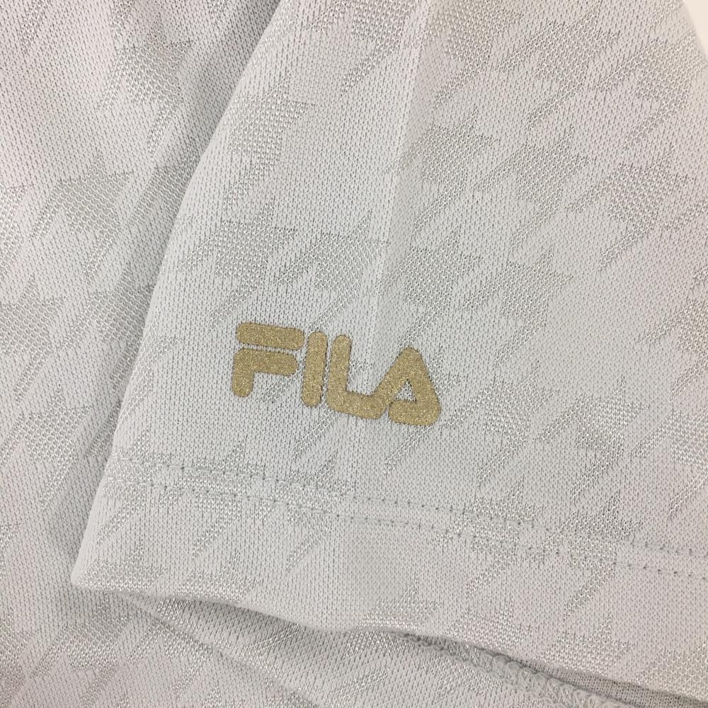 【美品】フィラゴルフ 半袖ポロシャツ ライトグレー 千鳥格子織生地 レディース L ゴルフウェア FILA GOLF