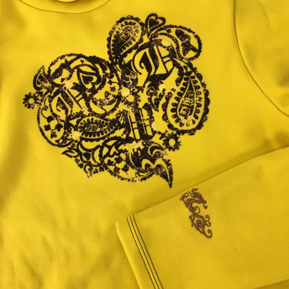 ダンスウィズドラゴン 長袖ハイネックシャツ イエロー×黒 裏起毛 レディース 3(L) ゴルフウェア Dance With Dragon