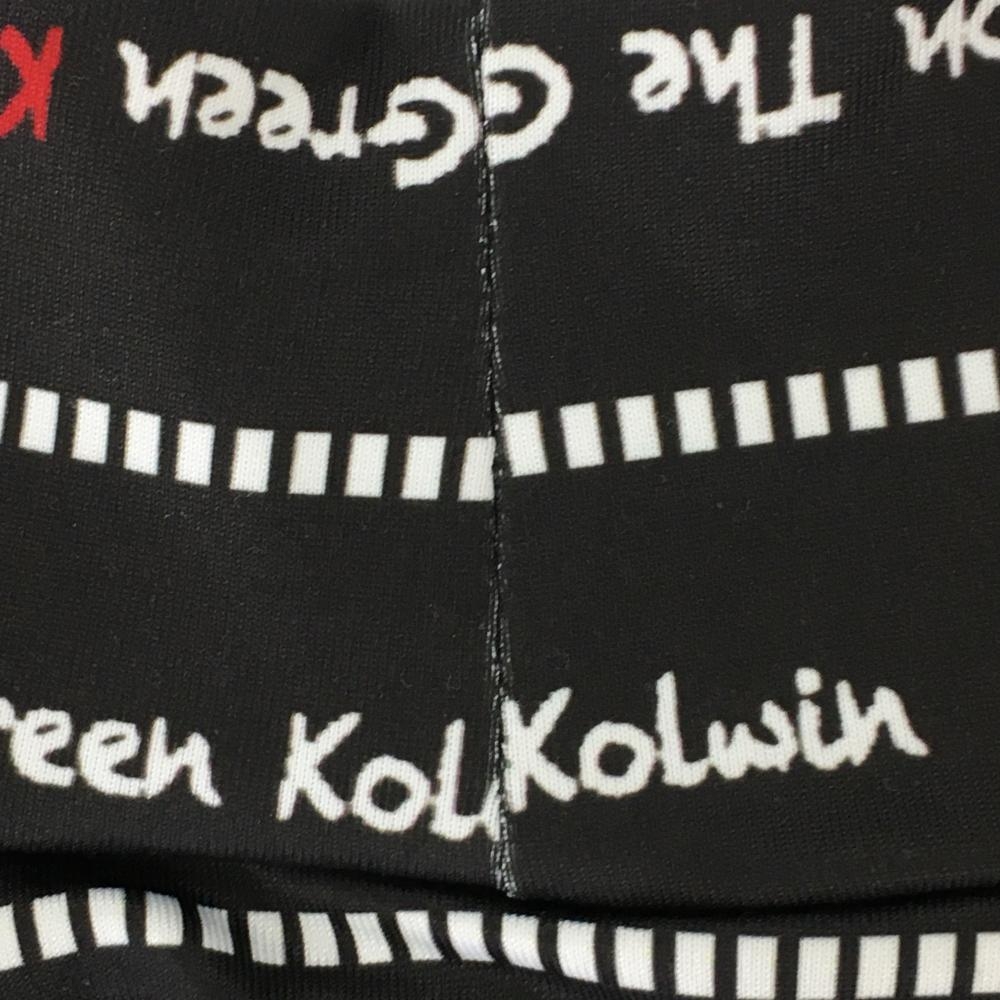 【美品】コルウィン 長袖ハイネックシャツ 黒×白 ボーダー 英字 レディース L ゴルフウェア Kolwin