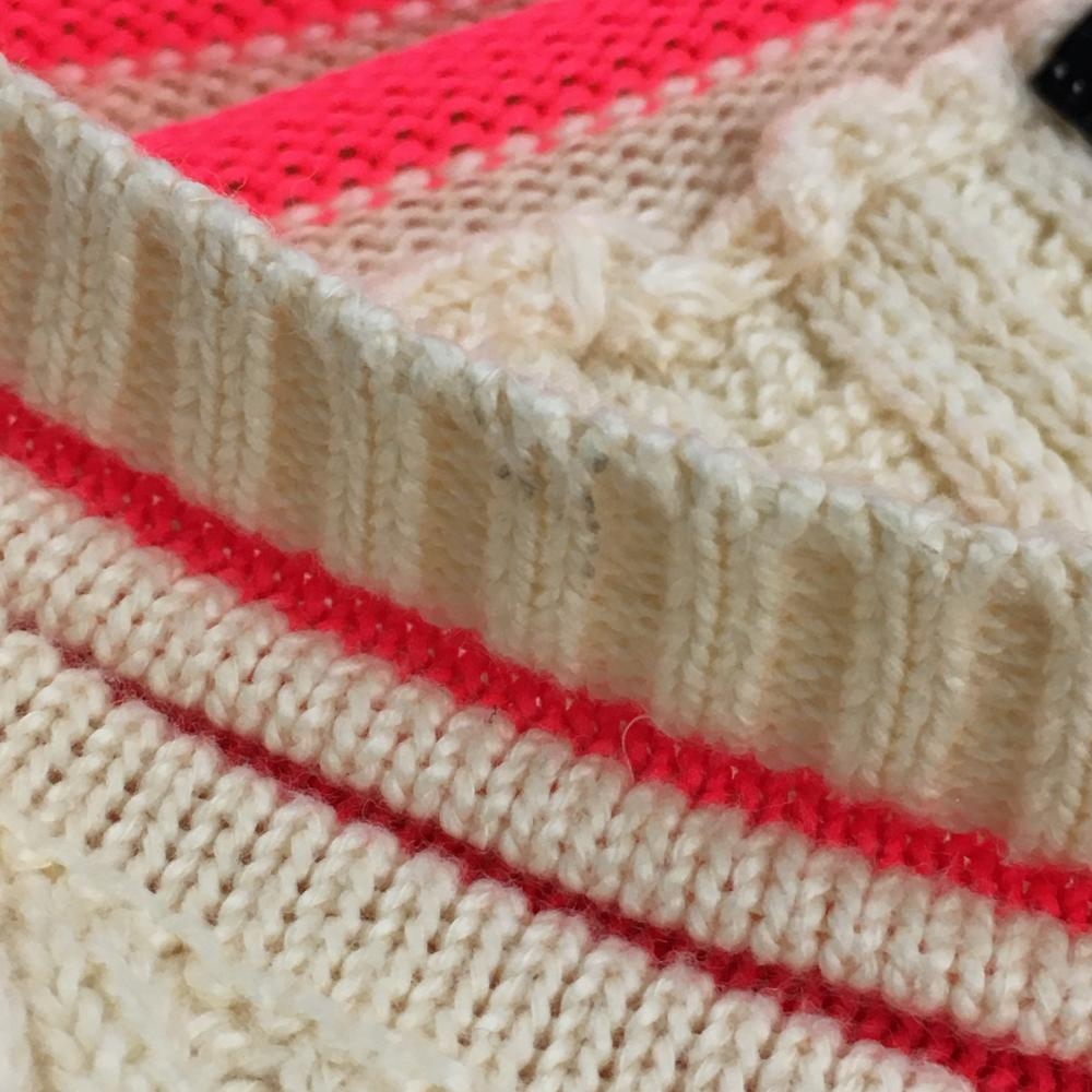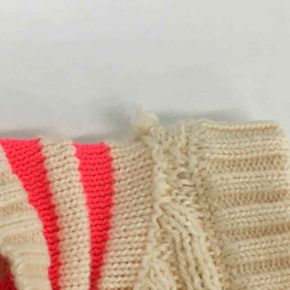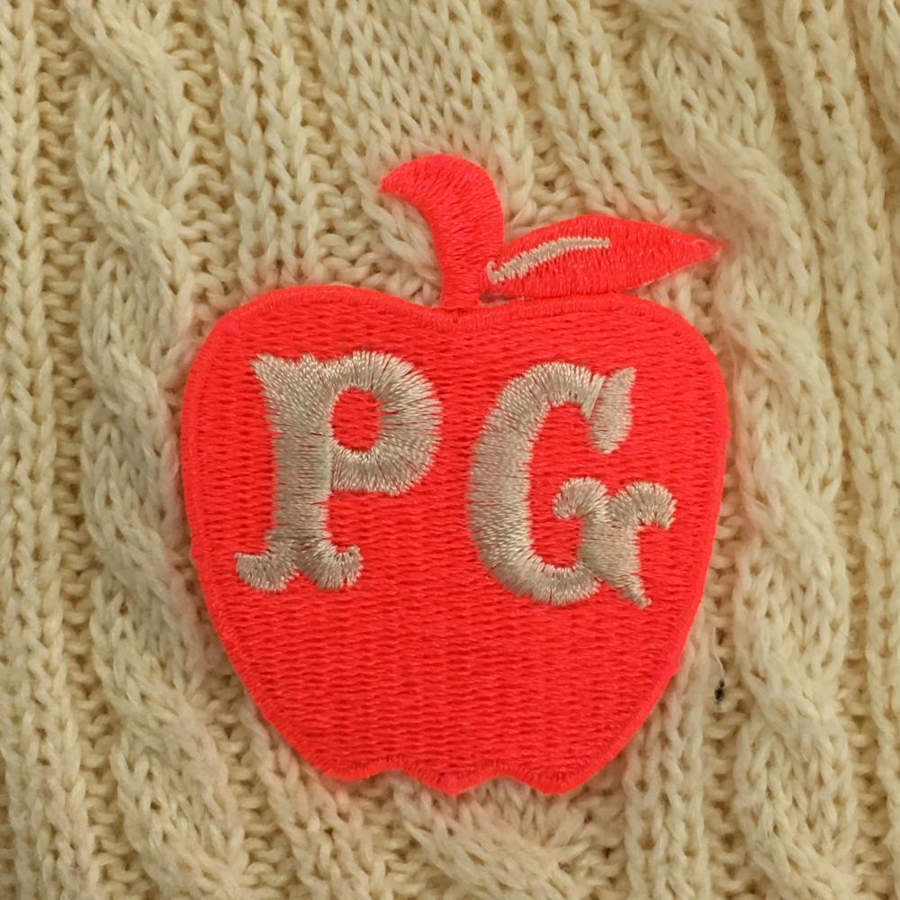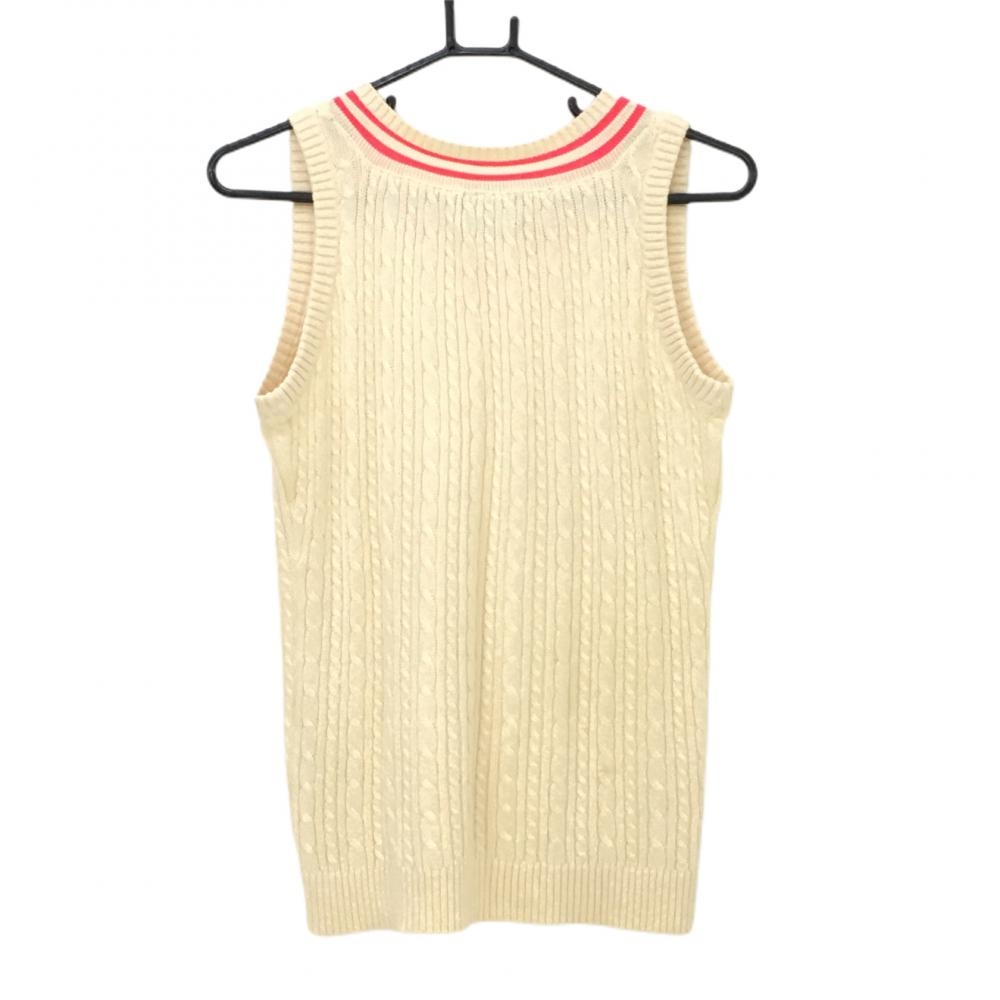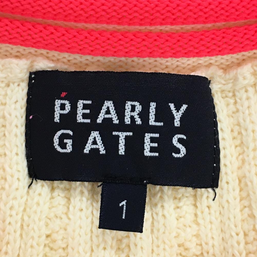 【美品】パーリーゲイツ ニットベスト アイボリー×蛍光ピンク アップル Vネック レディース 1(M) ゴルフウェア PEARLY GATES