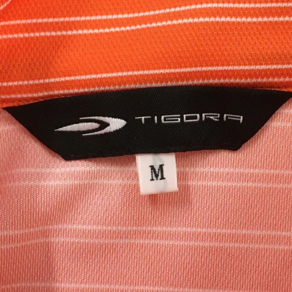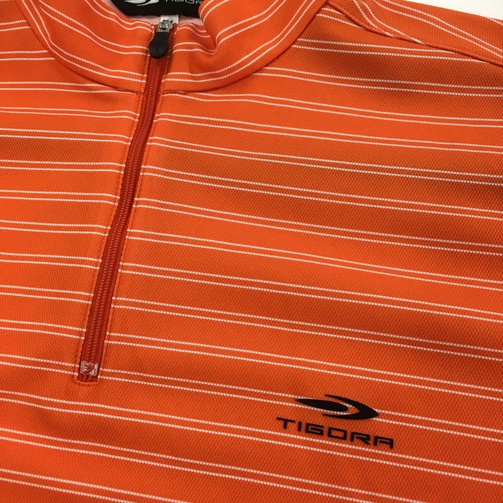 【超美品】ティゴラ 半袖ハイネックシャツ オレンジ×白 ボーダー ハーフジップ メンズ M ゴルフウェア TIGORA