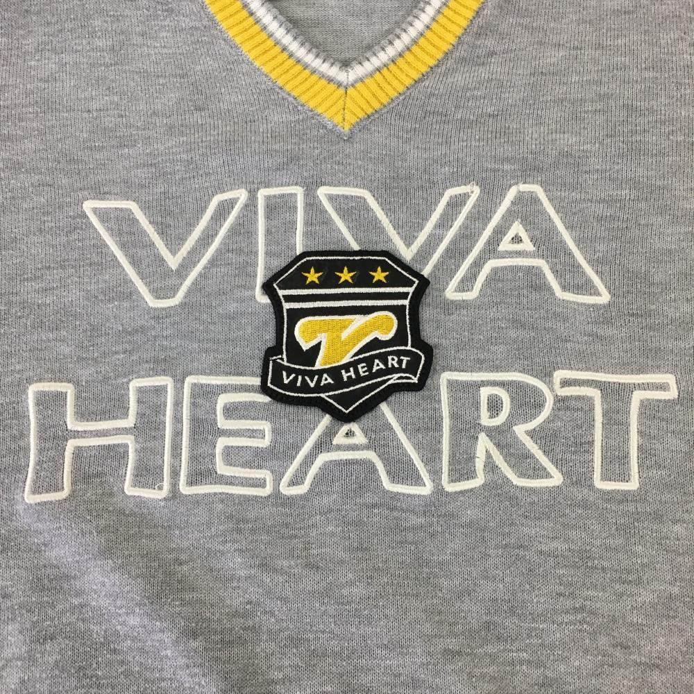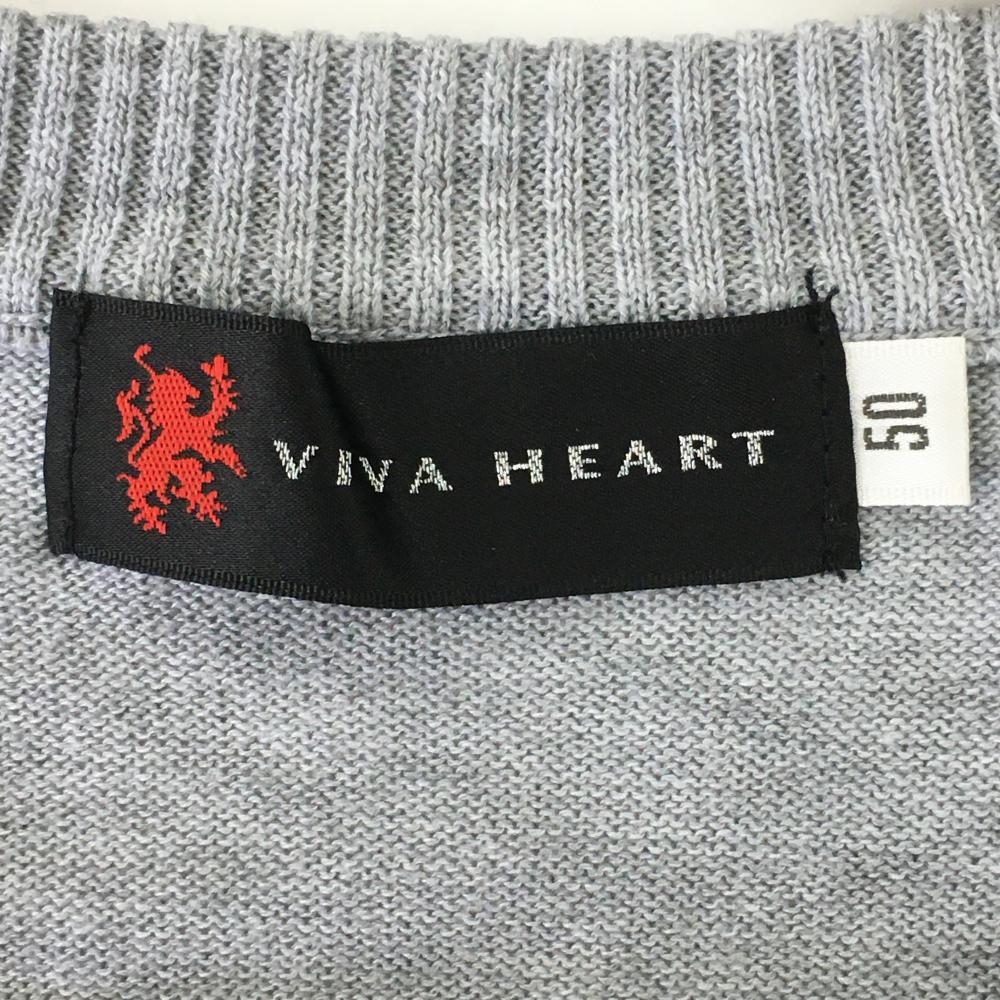 ビバハート セーター グレー×イエロー ロゴ刺しゅう Vネック メンズ 50(L) ゴルフウェア VIVA HEART
