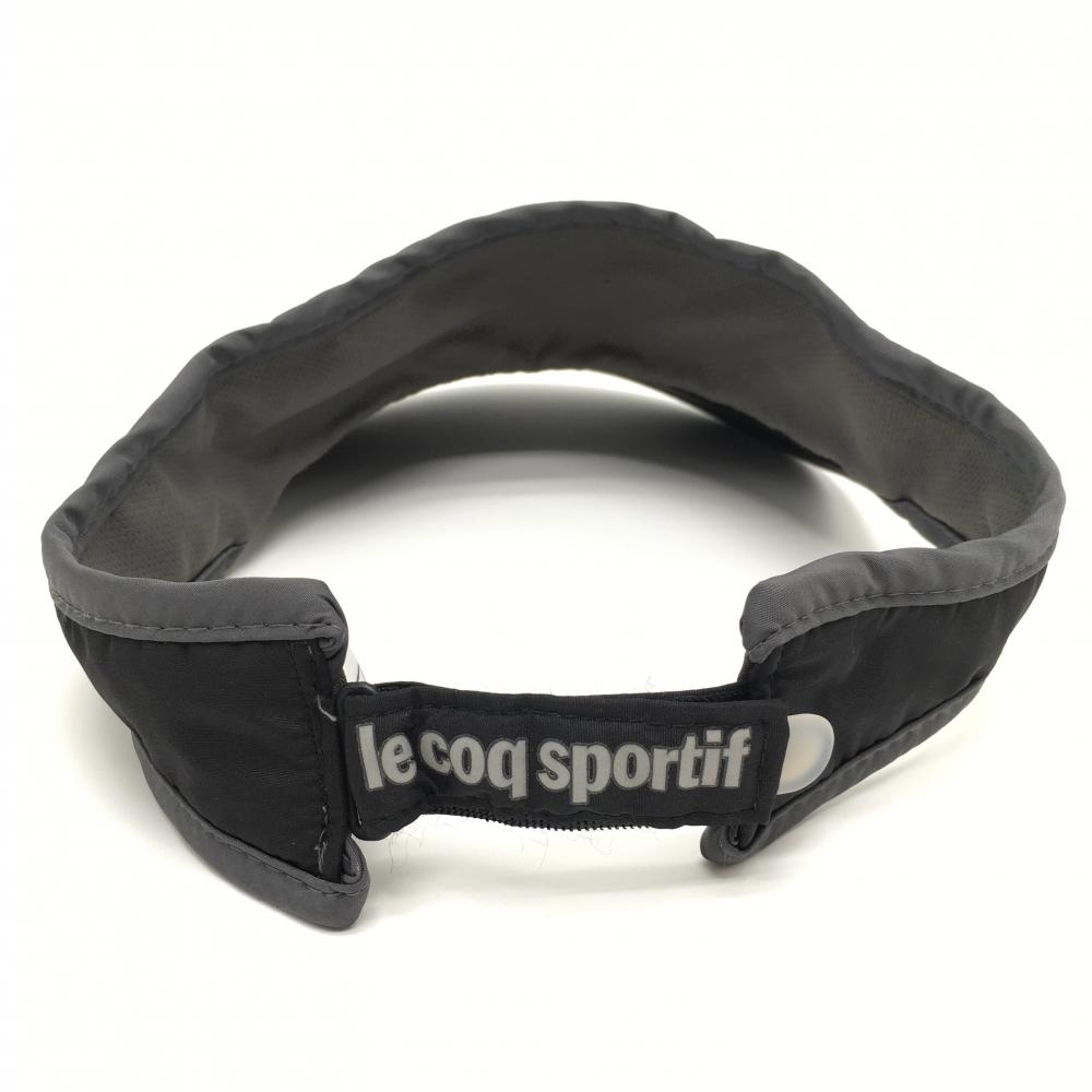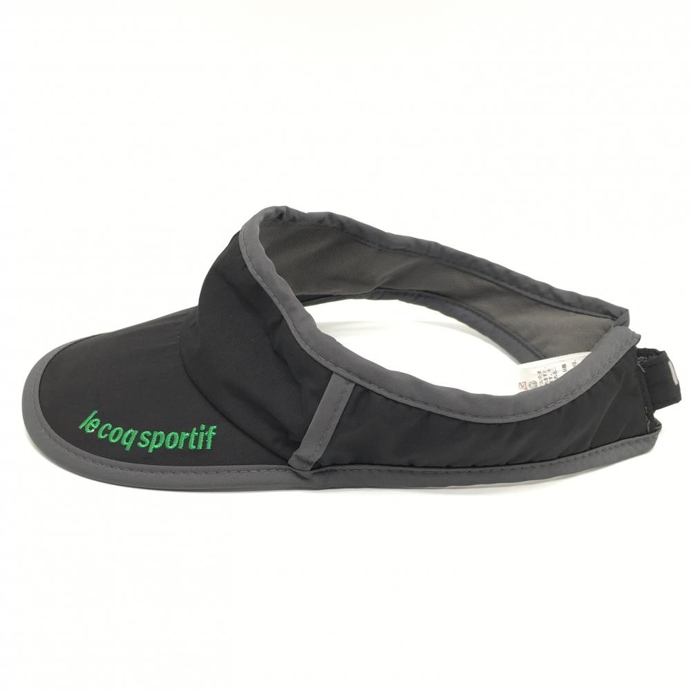 【美品】ルコック サンバイザー黒×グレー ロゴ刺しゅう F(57-59cm) ゴルフウェア le coq sportif