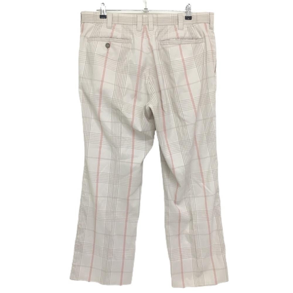 【美品】カッターアンドバック パンツ ベージュ×レッド チェック 薄手 メンズ 92 ゴルフウェア CUTTER&BUCK