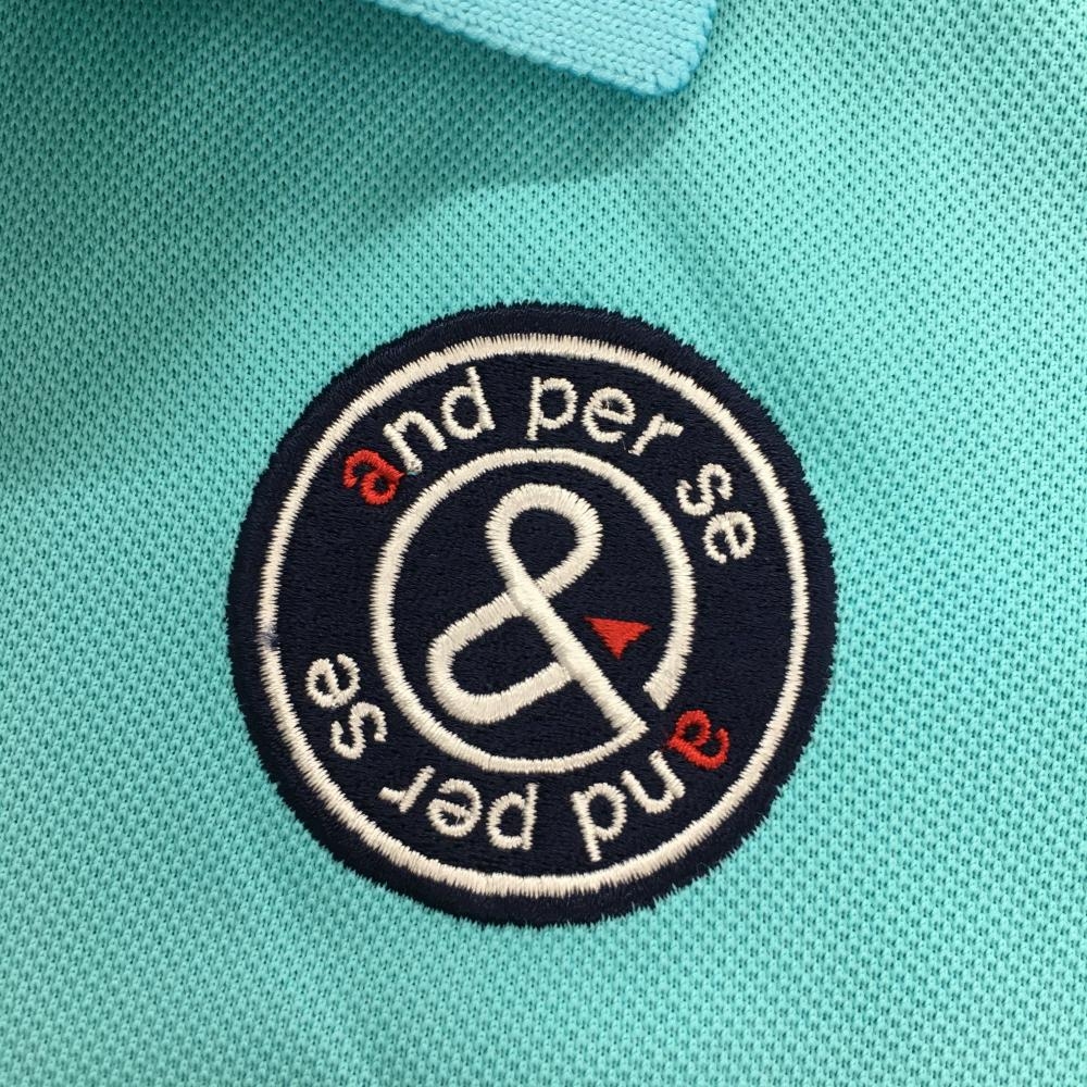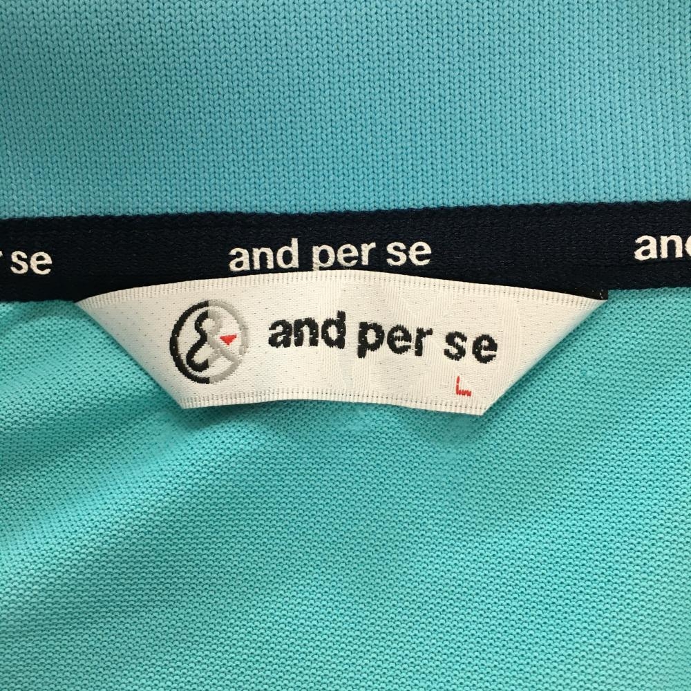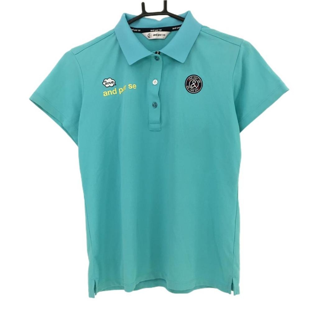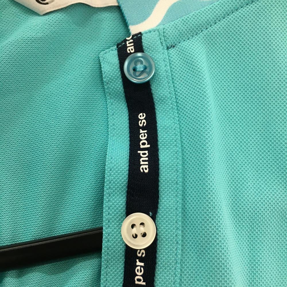 アンパスィ 半袖ポロシャツ ライトブルー 前立てロゴテープ 襟裏ライン レディース L ゴルフウェア and per se