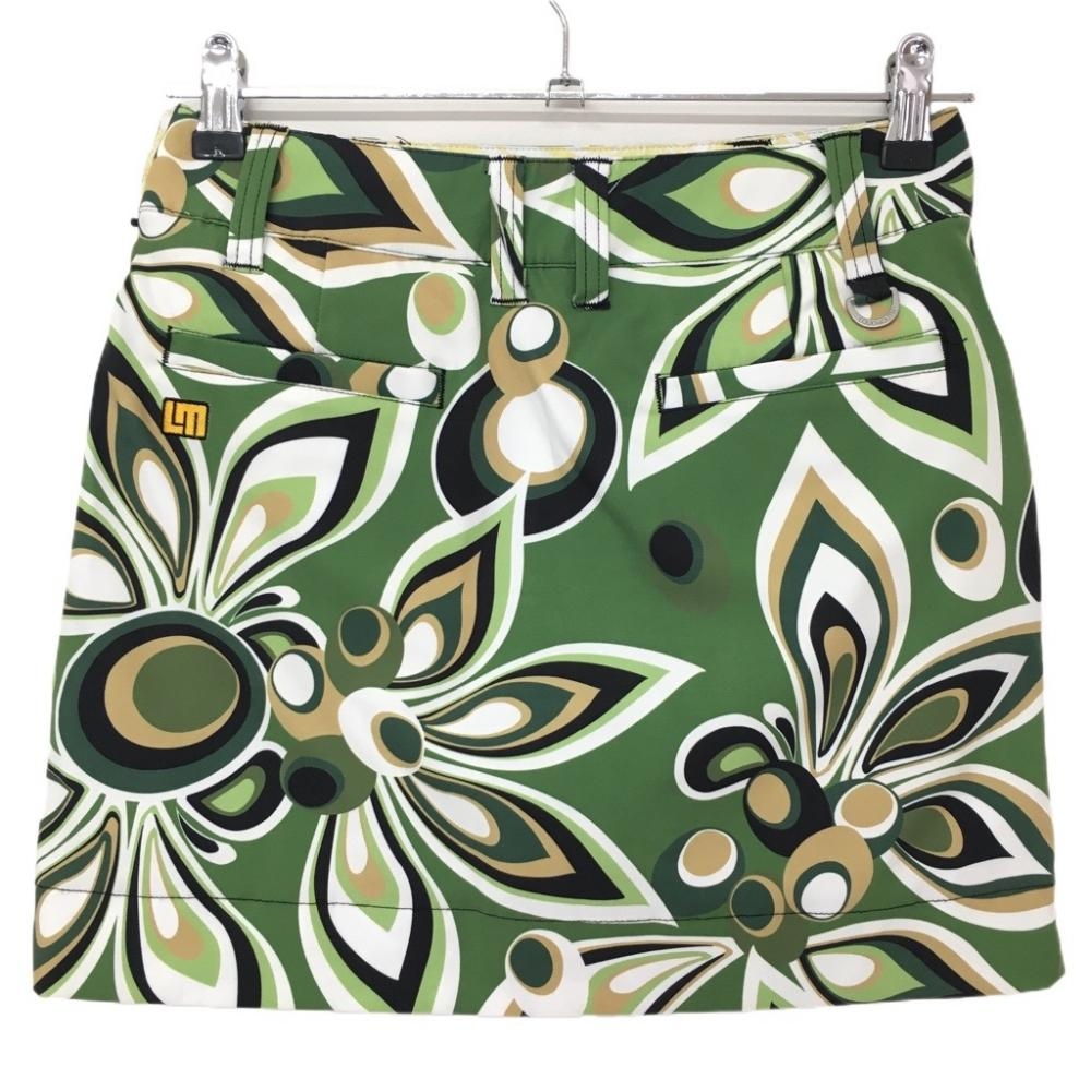 【美品】ラウドマウス スカート グリーン×黒 シャガデッリクカモ 内側インナーパンツ レディース S ゴルフウェア LOUDMOUTH