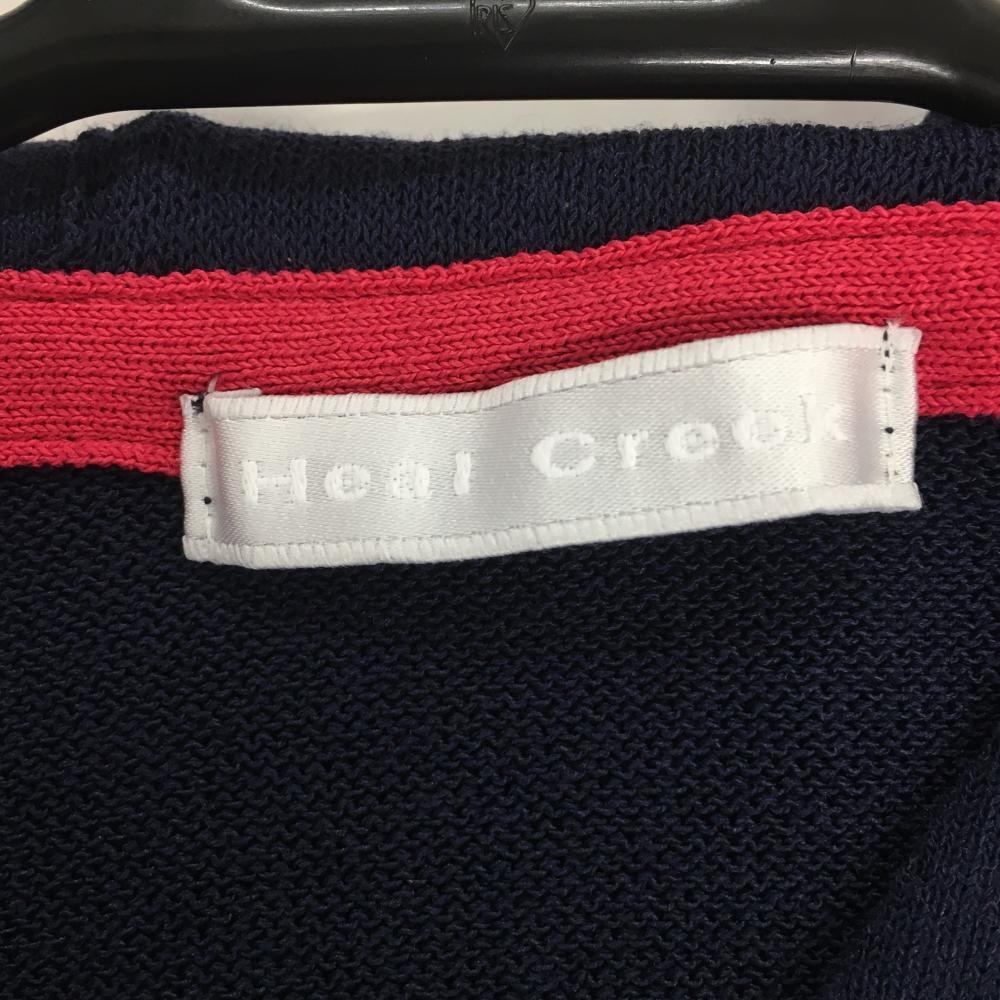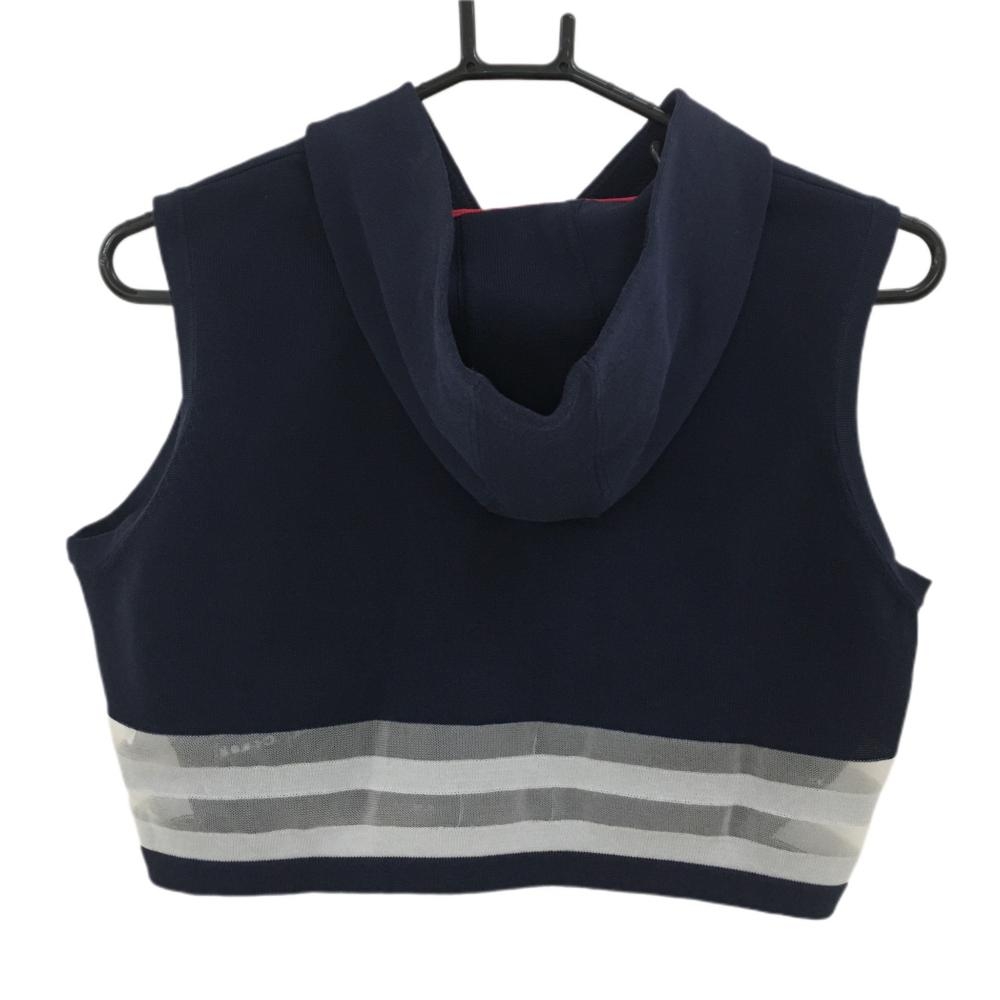 ヒールクリーク ニットベスト ネイビー×白 ショート丈 フード付き 後ろ裾シースルー レディース 42(L) ゴルフウェア Heal Creek