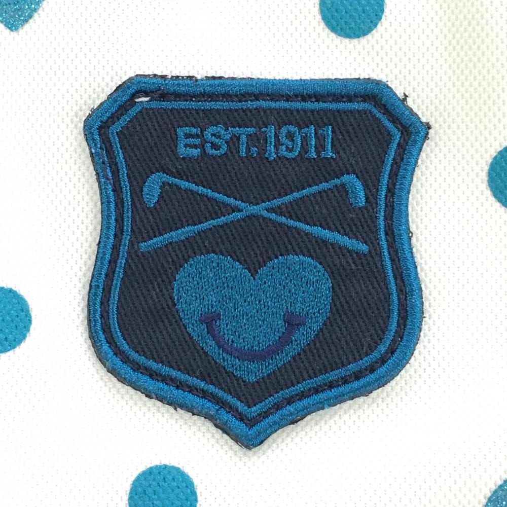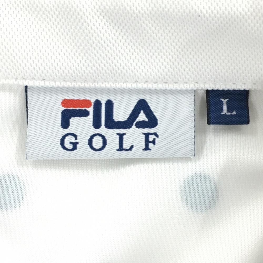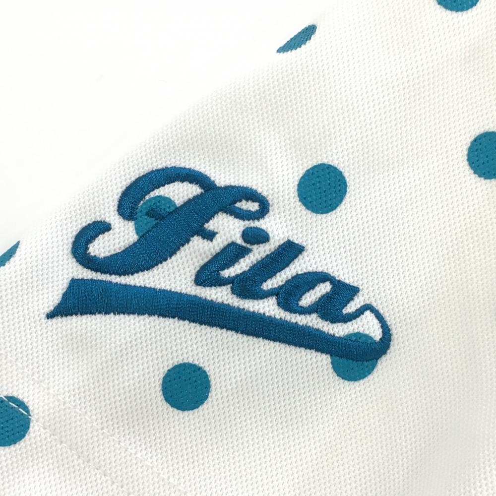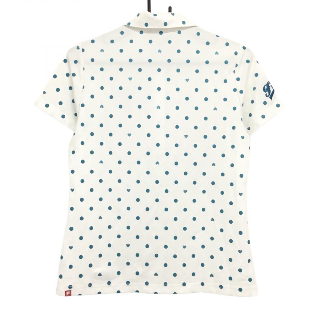フィラゴルフ 半袖ポロシャツ 白×ライトブルー ドット柄 ハート柄 一部ラメ レディース L ゴルフウェア FILA GOLF