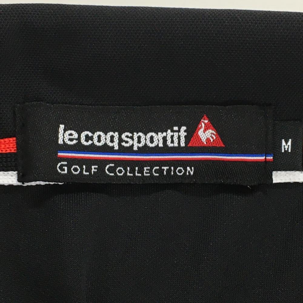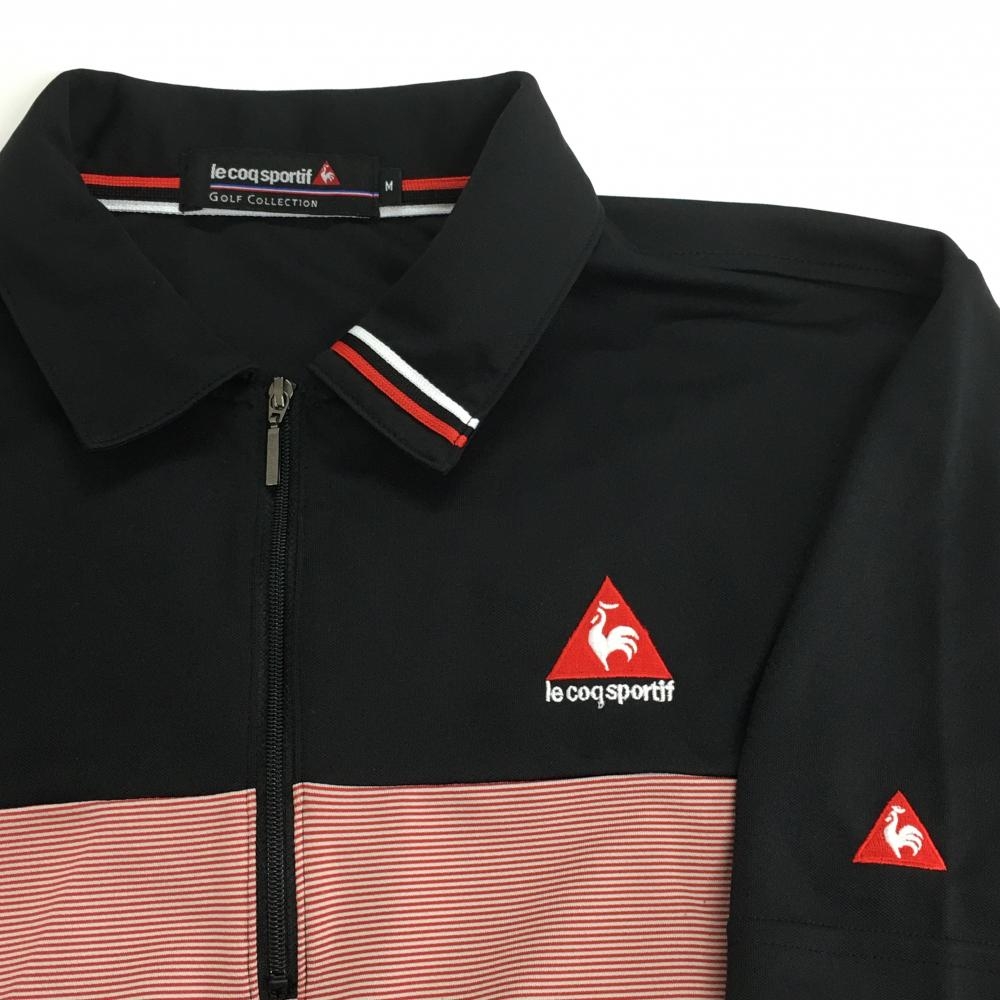 【美品】ルコック 半袖ハイネックシャツ 黒×レッド 胸元ボーダー ハーフジップ メンズ M ゴルフウェア le coq sportif