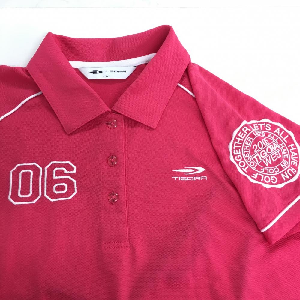 ティゴラ 半袖ポロシャツ ピンク×白 ロゴ刺しゅう レディース L ゴルフウェア TIGORA