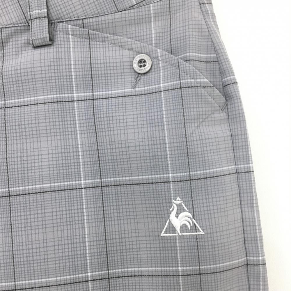 【超美品】ルコック ハーフパンツ グレー×白 チェック 総柄 ストレッチ レディース M ゴルフウェア le coq sportif