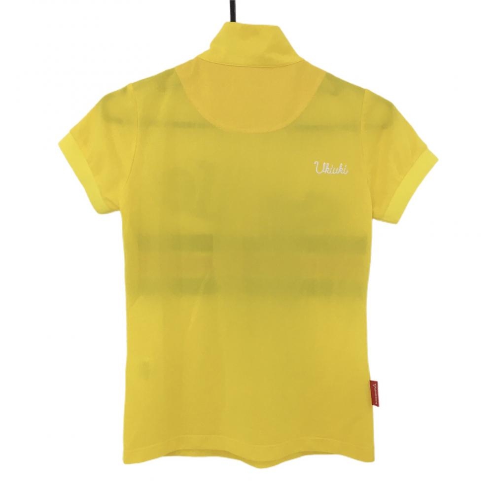 ルコック 半袖ハイネックシャツ イエロー×ネイビー 胸部ライン ハーフジップ レディース S ゴルフウェア le coq sportif