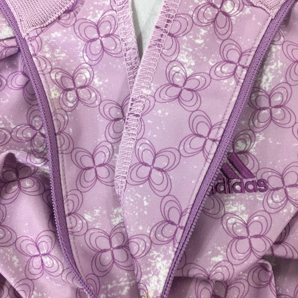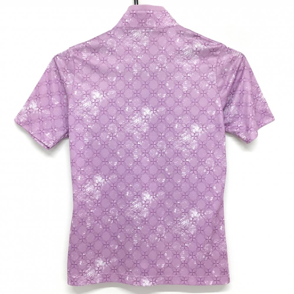 アディダス 半袖ハイネックシャツ パープル×白 花柄 ハーフジップ レディース S/P ゴルフウェア adidas