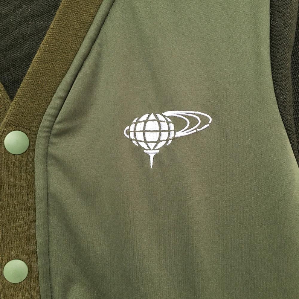 ビームスゴルフ 異素材カーディガン カーキ ロゴ刺しゅう レディース S ゴルフウェア BEAMS GOLF