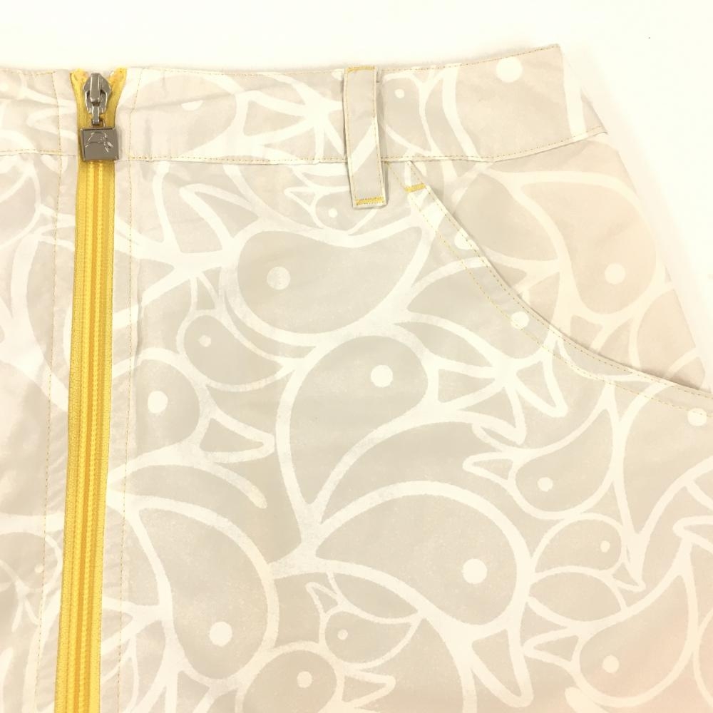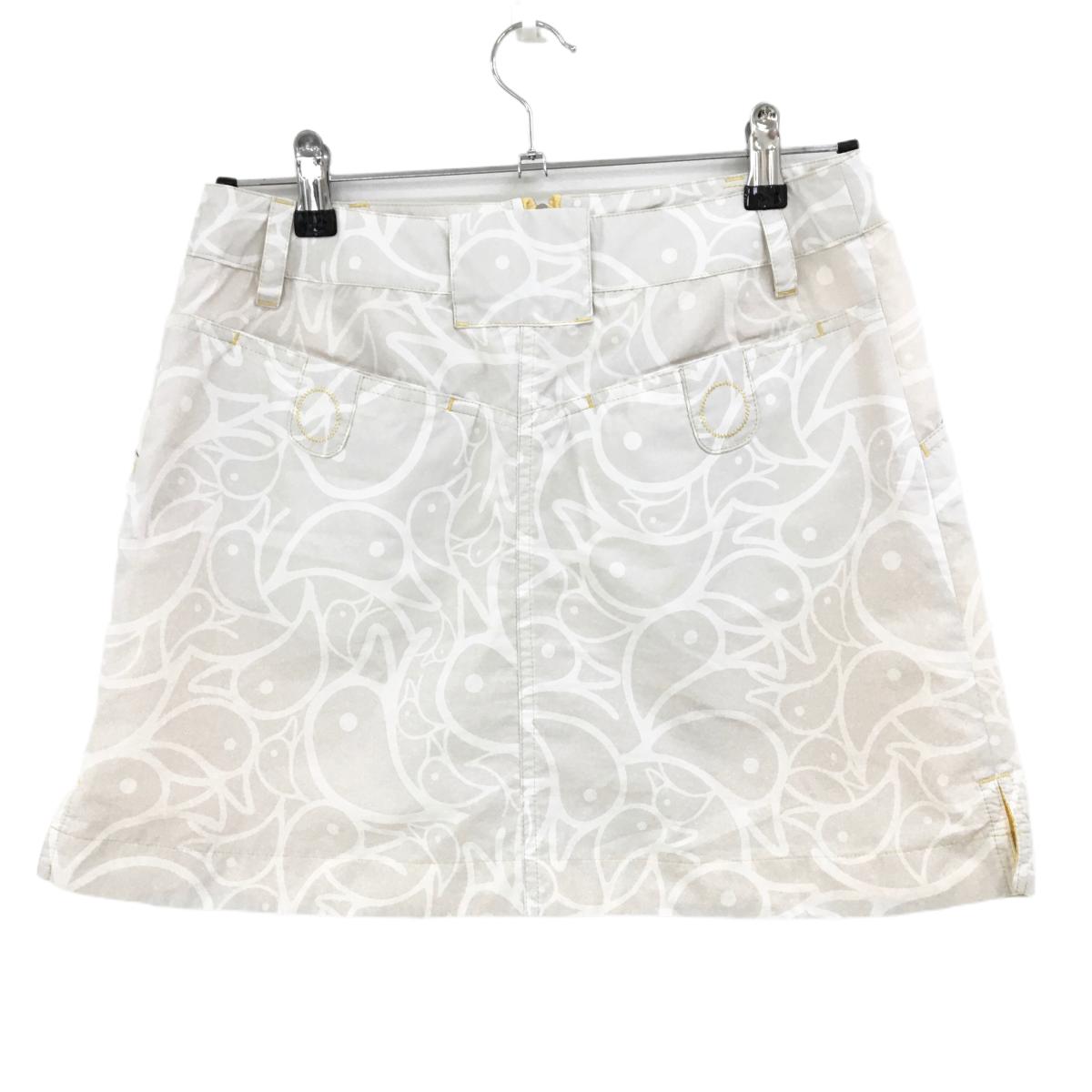 【美品】マンダリナダック スカート ライトグレー×白 総柄 裏地メッシュ レディース M ゴルフウェア MANDARINA DUCK