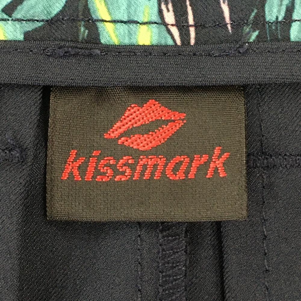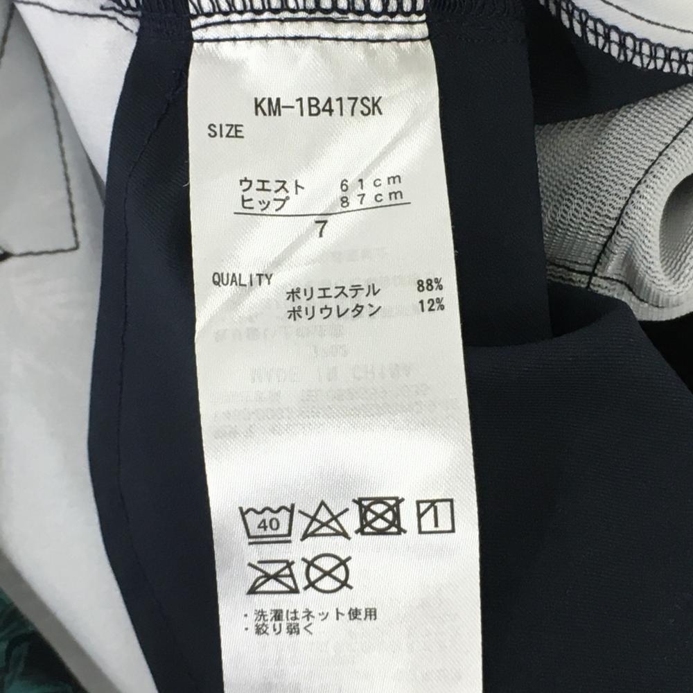 【超美品】キスマークゴルフ スカート ネイビー×グリーン リーフ柄 レディース 7 ゴルフウェア Kissmark