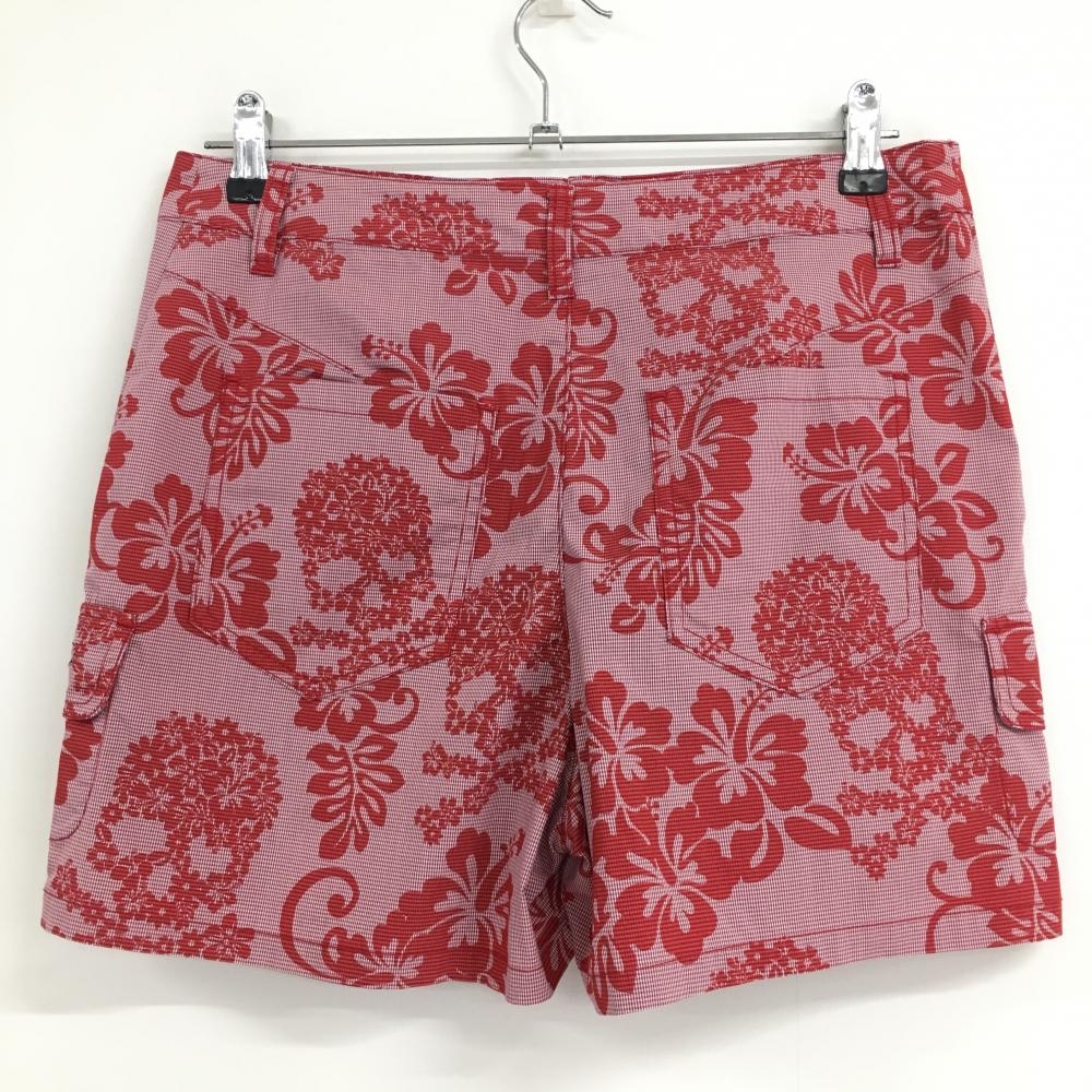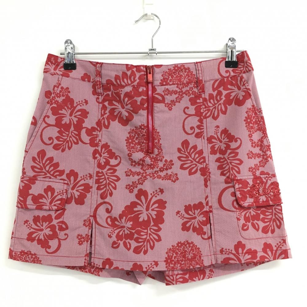 【超美品】ダンスウィズドラゴン キュロットスカート レッド×白 花柄 チェック レディース 3(L) ゴルフウェア Dance With Dragon